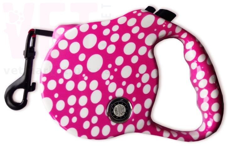 Повідець-рулетка 24-46 рожевий у білий горошок, 3 м, до 13 кг, стрічка