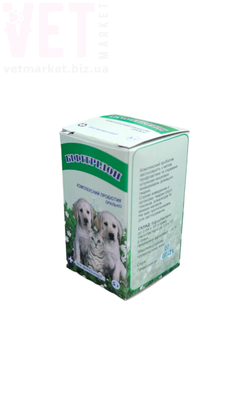 Бифитрилон - комплексный пробиотик применяют с целью профилактики и лечения желудочно - кишечных заболеваний домашних животных. Способствует выведению из организма животных ядов, токсинов, алкалоидов и тяжелых металлов.