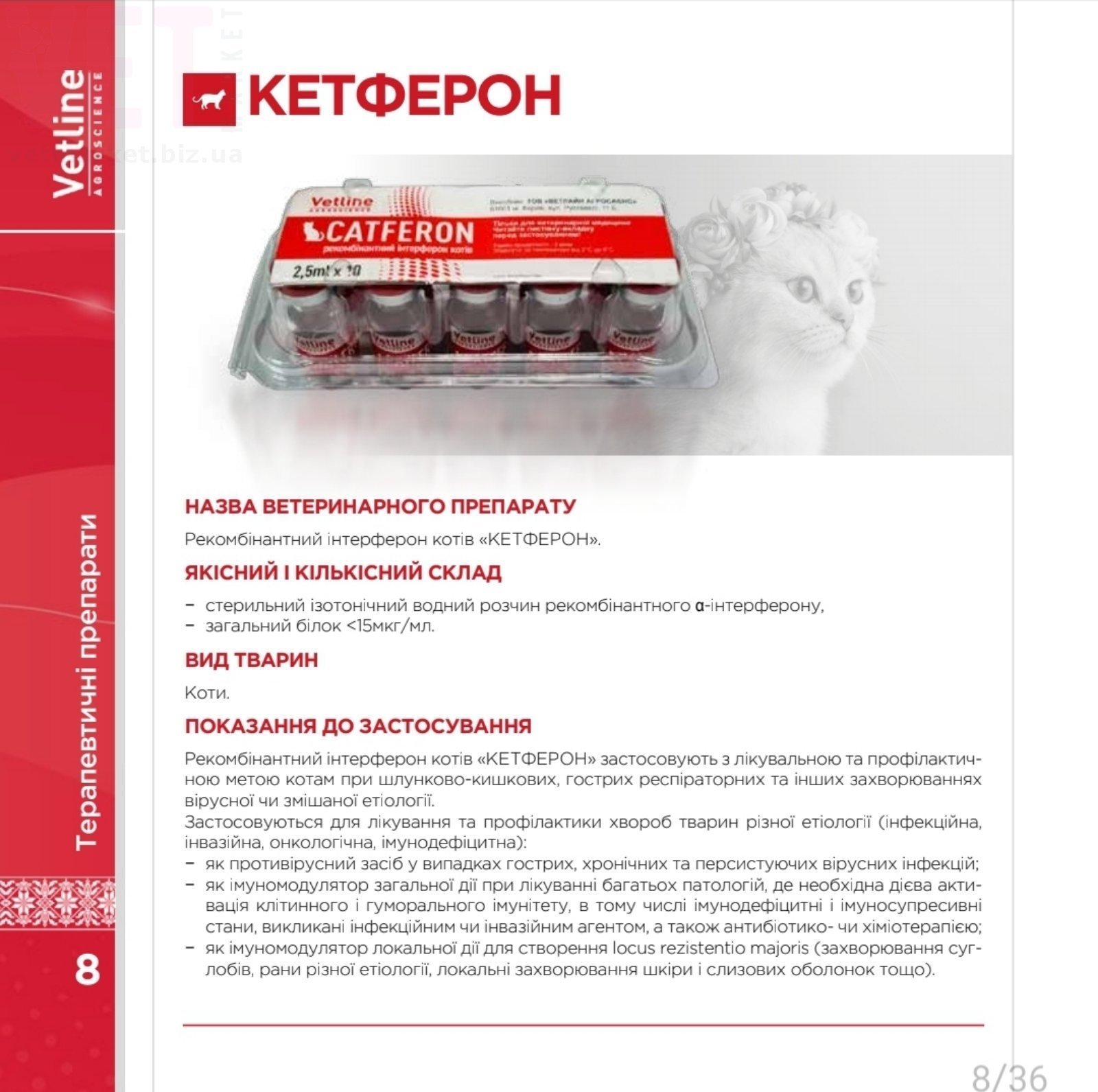 Кетферон (Catferon) для котів, 2 мл (400 т.МО/мл), Vetline