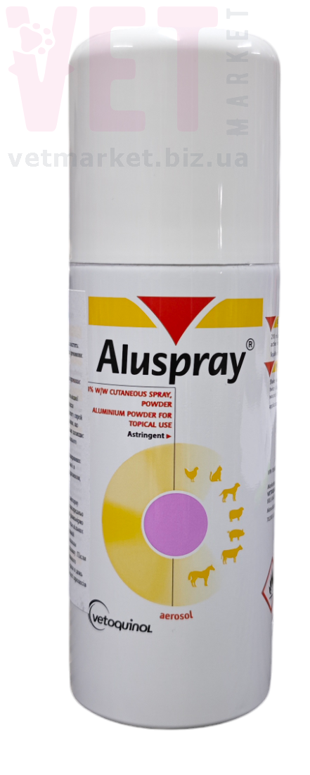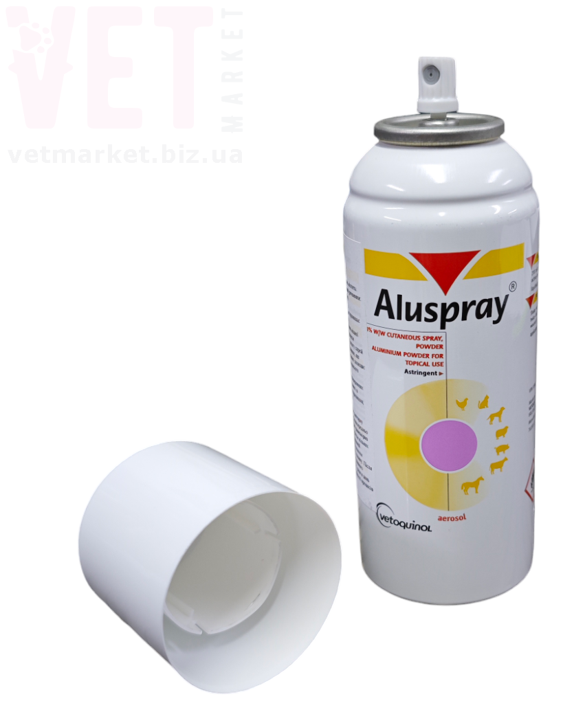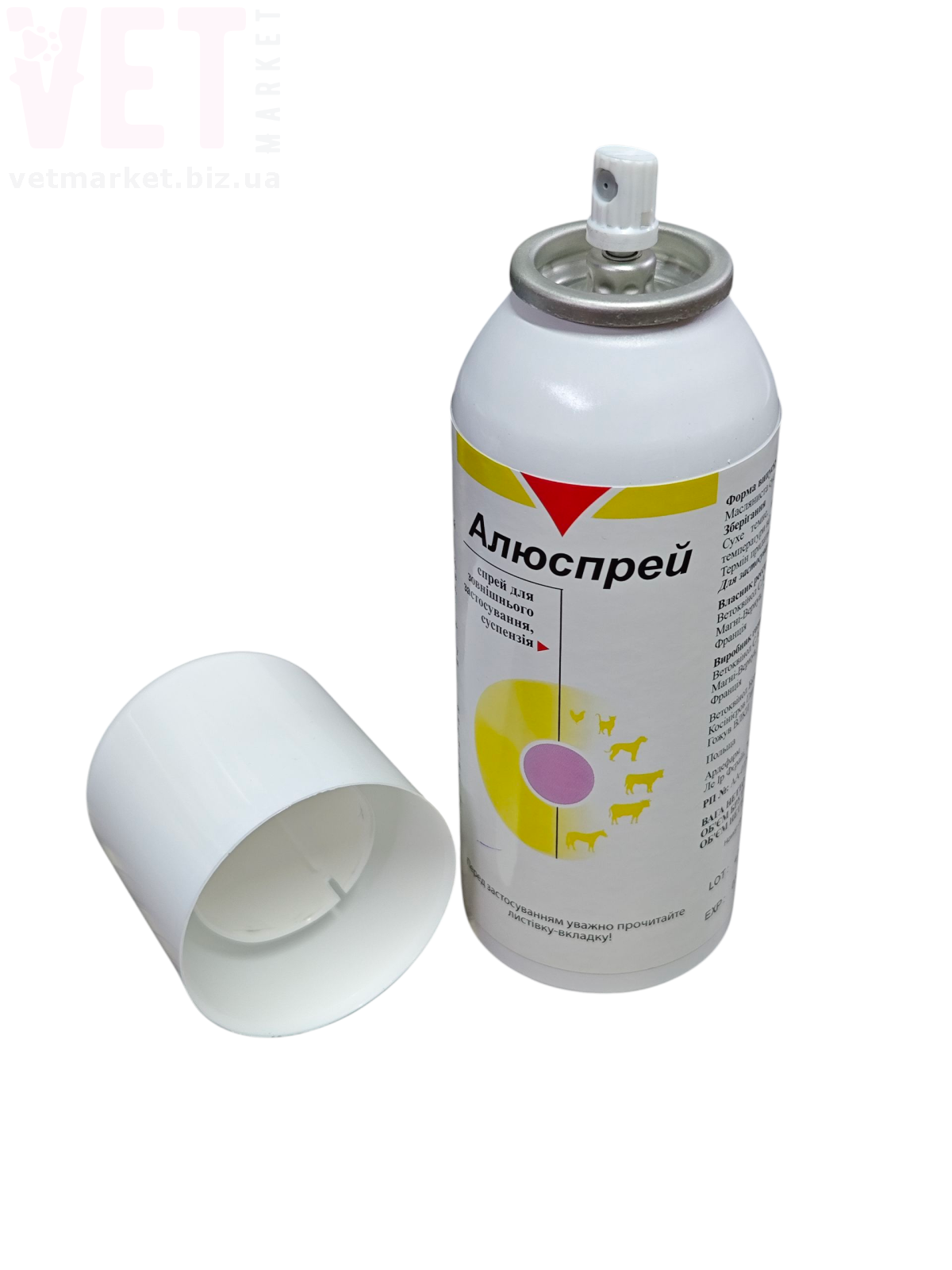 застосуванням лікарського препарату слід провести санітарну обробку рани. Струсити балон перед використанням. Розпорошити Алюспрей протягом декількох секунд на оброблювану поверхню з відстані 20-25 см (до утворення тонкого шару). Після нанесення лікарського засобу слід зафіксувати тварину на 1-3 хв. Алюспрей застосовують при необхідності 1-2 рази/день. Слід уникати перепустки чергової обробки препаратом, т.к. це може призвести до зниження його ефективності. При пропущенні однієї або декількох обробок курс лікування необхідно відновити відповідно до передбаченої схеми застосування.