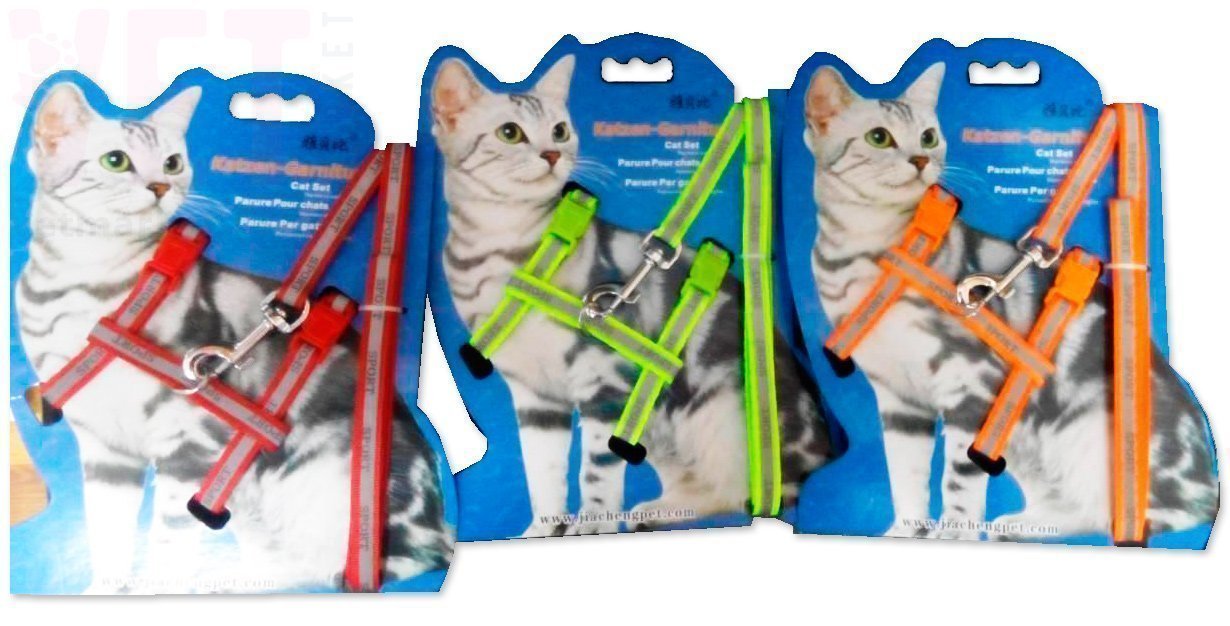 Шлейка с поводком нейлоновая цветная, с отражающим эффектом, для прогулок кошек и котов. Прочные и практичные пластиковые застежки позволяют быстро надеть шлейку и отрегулировать размер. Поводок к шлейке крепится с помощью металлического крепления-замка (карабина). Шлейку рекомендуется одевать во время прогулок, поездок, чтобы у хозяина не возникло проблем с поиском домашнего питомца.