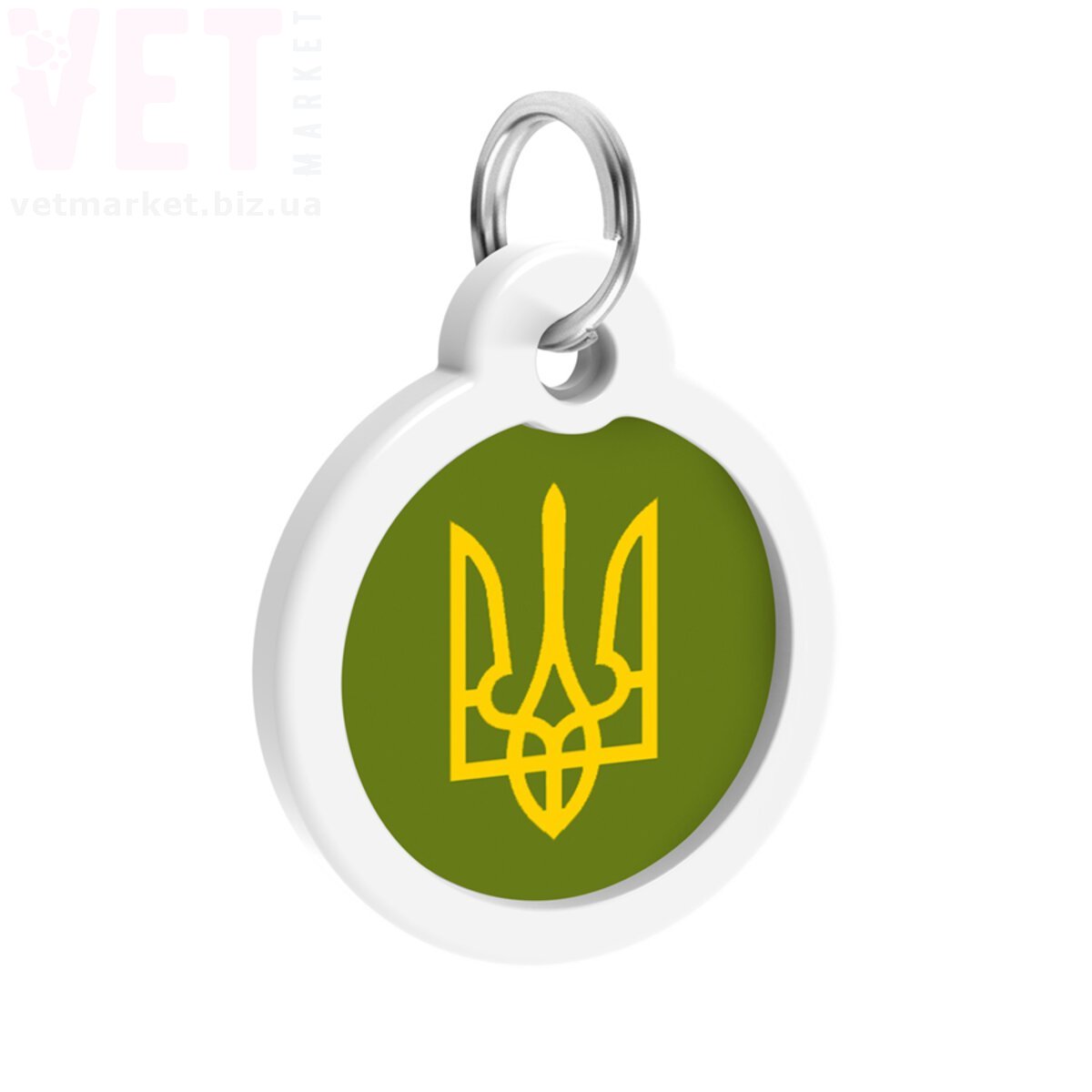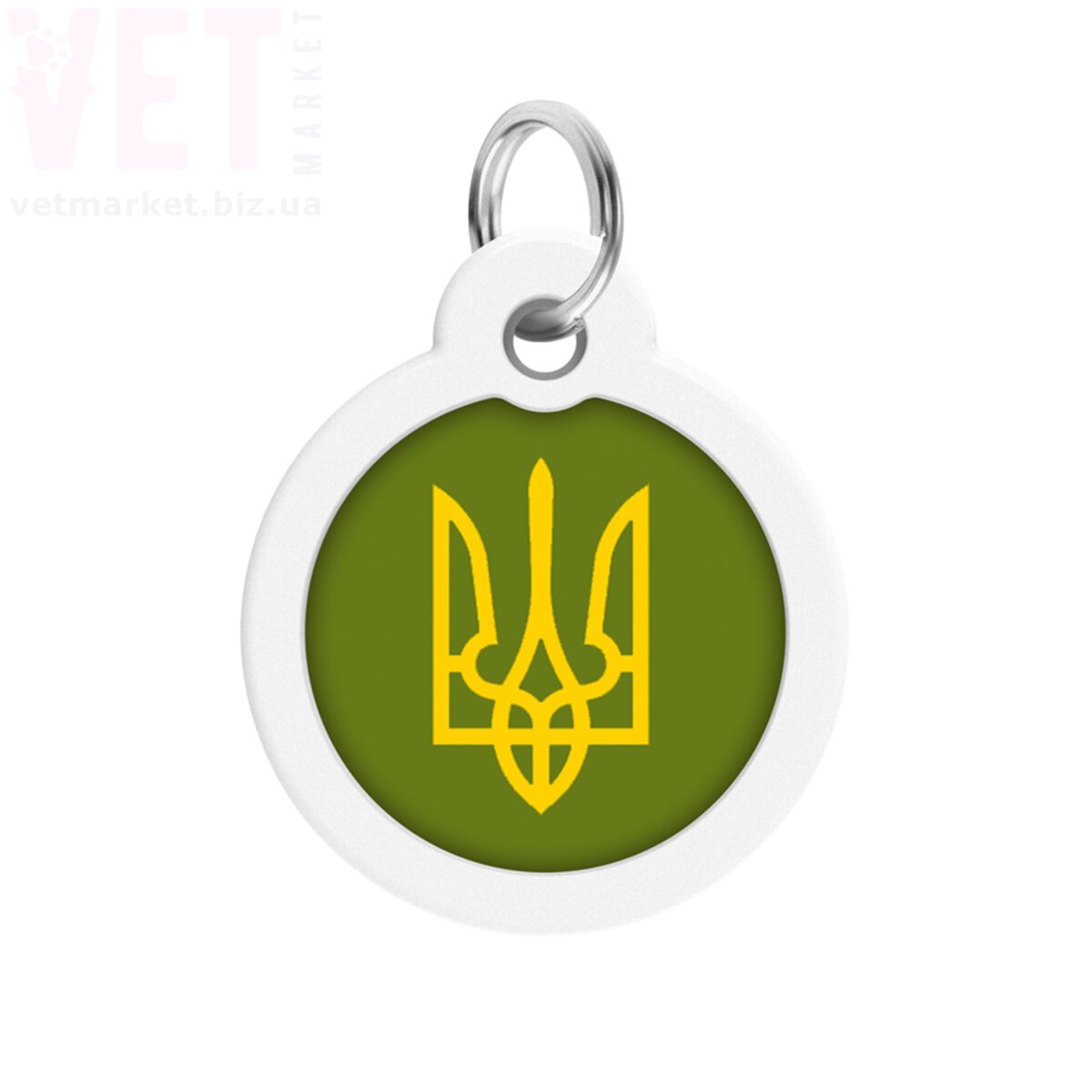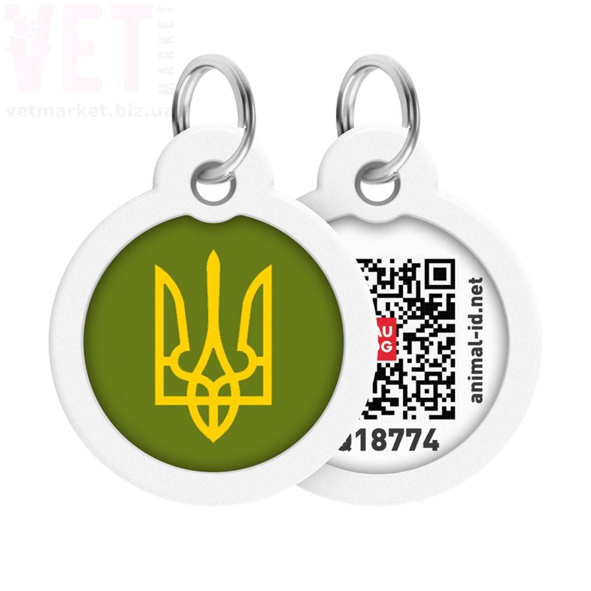 Адресник металевий WAUDOG Smart ID з QR паспортом, малюнок Тризуб олива, коло Д-30 мм