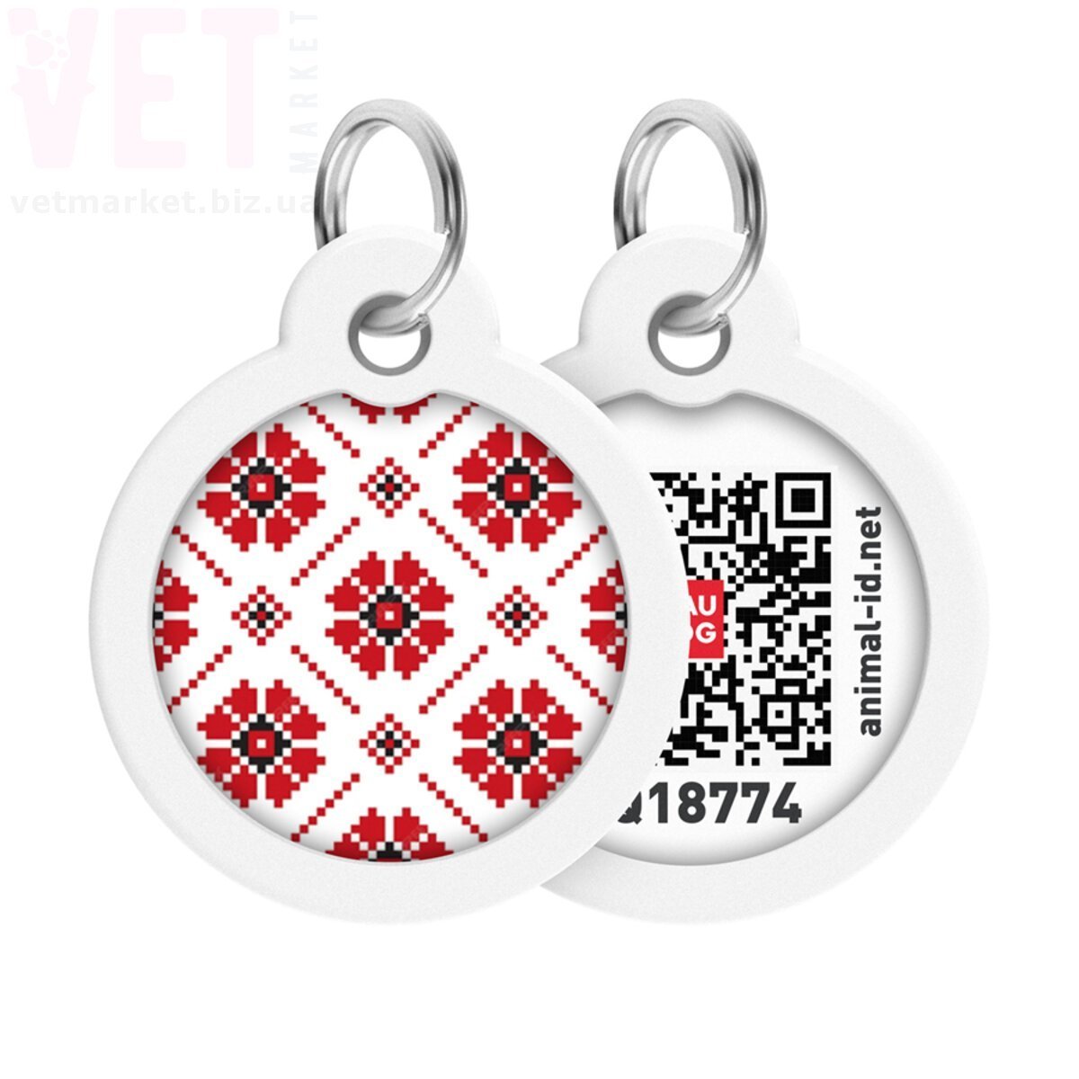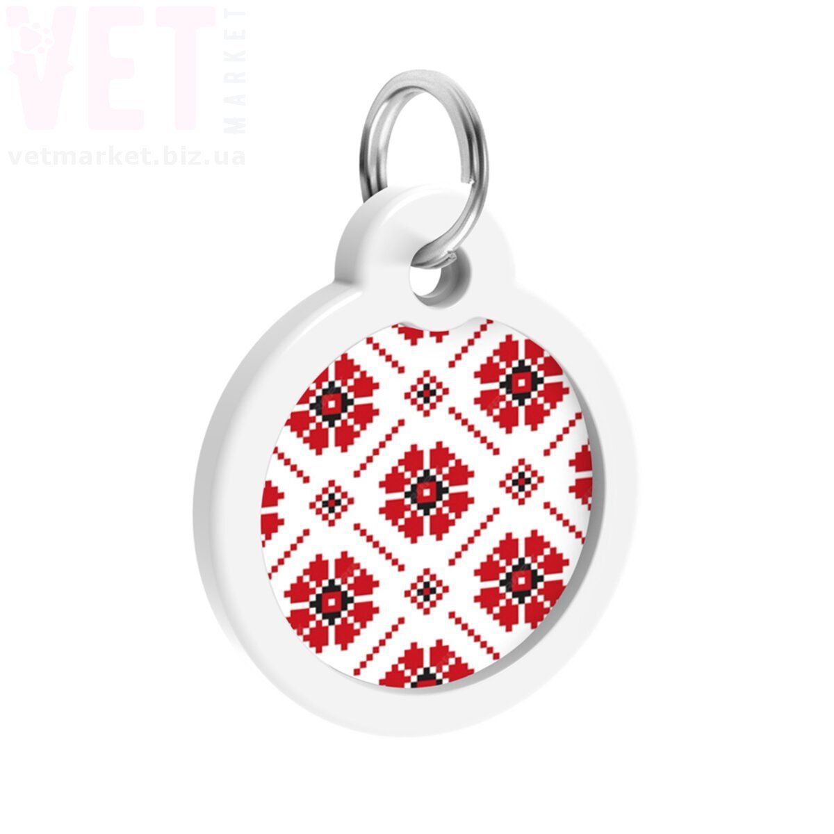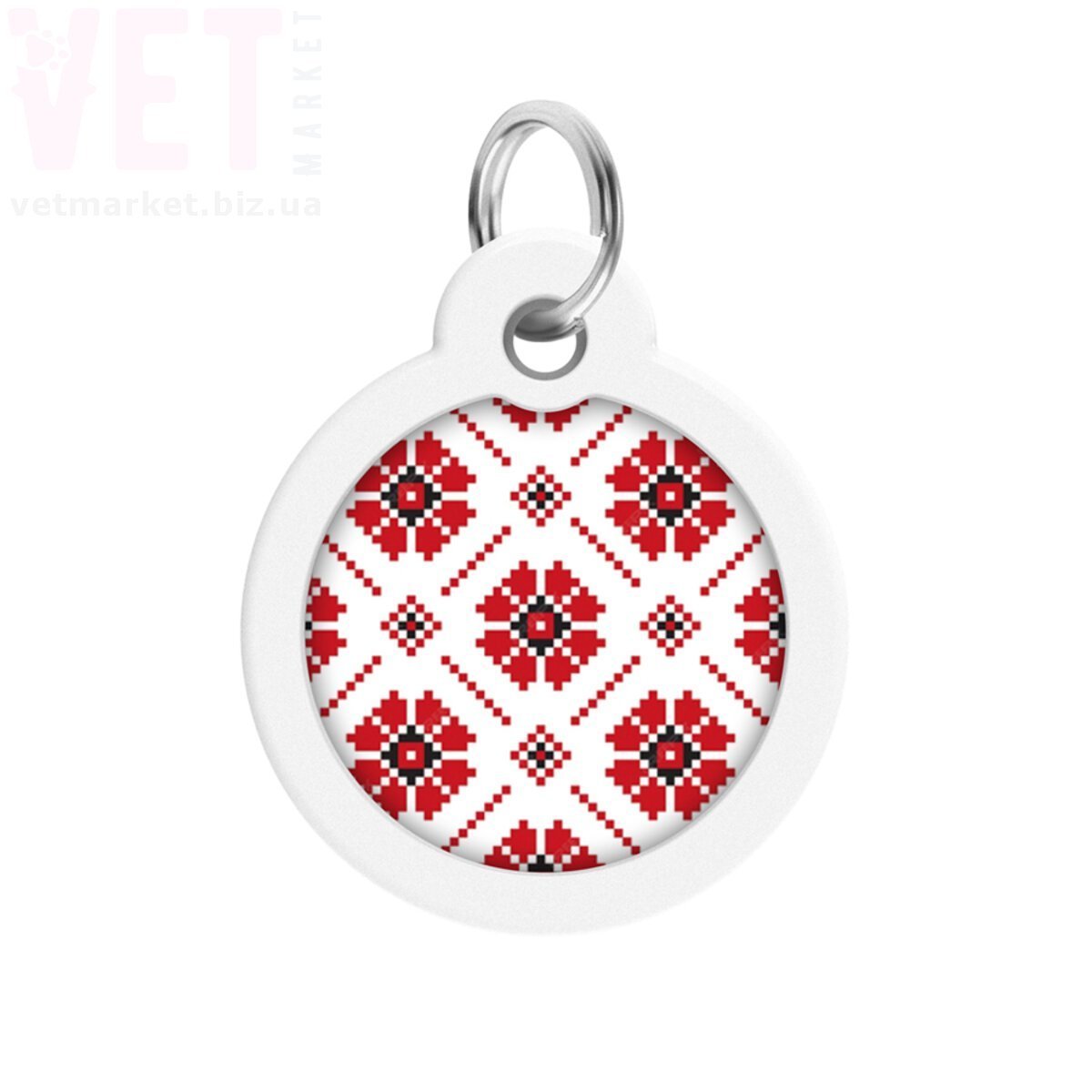Адресник металевий WAUDOG Smart ID з QR паспортом, малюнок Вишиванка, коло Д-30 мм