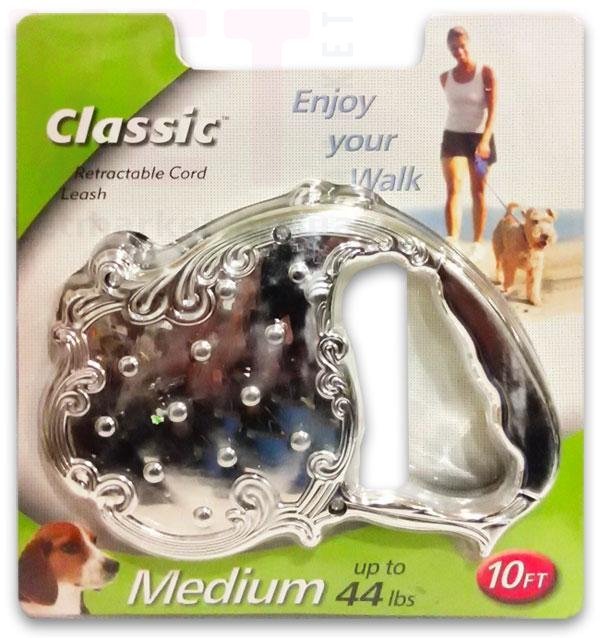 - Выдвижной ленточный поводок с удобной кнопкой позволяет легко регулировать длину.