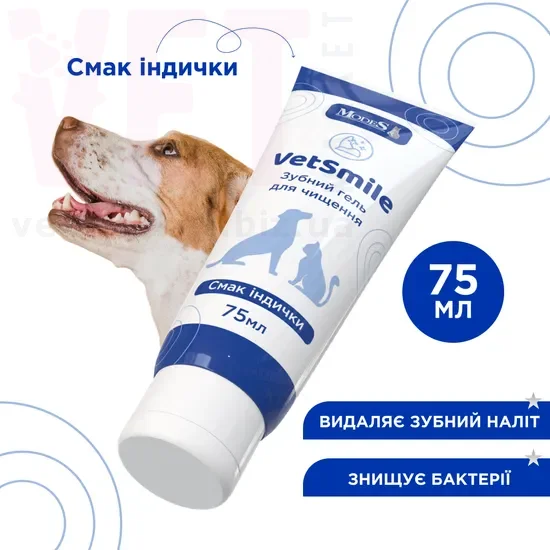 Гель VetSmile містить ферменти або антибактеріальні компоненти, що руйнують наліт, який з часом може перетворитися на зубний камінь. Ферменти в його складі розщеплюють бактеріальну плівку, а антимікробні компоненти зменшують запалення: