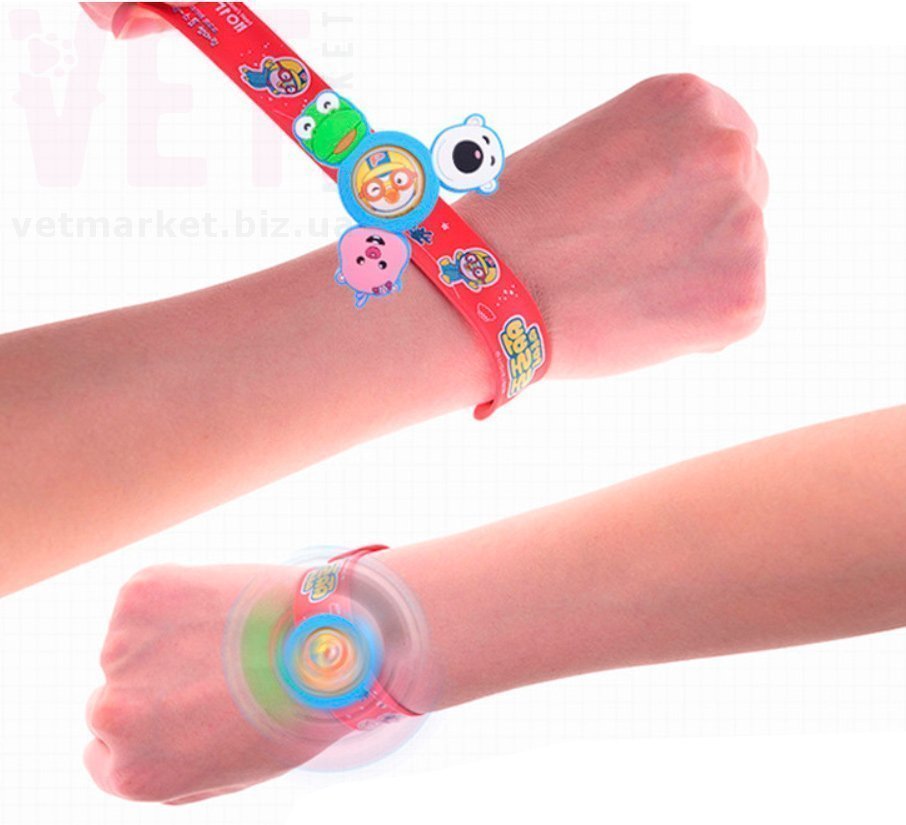 Детский браслет со спиннером от комаров мошек, клещей и других насекомых. Детский светящийся браслет-спиннер с героями мульфильмов, светящийся. В комплекте к браслету имеются сменные вставки с репеллентом. Вставка содержит натуральные, нетоксичные и безопасные природные репелленты - масла цитронеллы и лаванды, эффективно отпугивающие кровососущих насекомых. Браслет совершенно безопасен для ношения, действует тонизирующе и освежающе для человека, отлично подходит для ношения детям, которые будут от такого браслета в восторге, а летающие кровососущие насекомые не побеспокоят ребенка. Время эффективного беспрерывного действия и ношения - 300 часов. Браслет от комаров можно носить на запястье или лодыжке, спиннер легко крепится, снимается и одевается на браслет. Подходит для детей старше 12 месяцев. Полностью регулируемый ремешок с многоразовым одеванием и снятием. Идеально подходит для дома, путешествий, выезда на природу, дачу, кемпинга, рыбалки, барбекю, спортивных мероприятий, везде где комары для детей угроза. Установленная в браслет вставка и спиннер, а также сам браслет приятно пахнут природным цветочно-травяным и цитрусовым запахом масла растения цитронелла и лаванды.