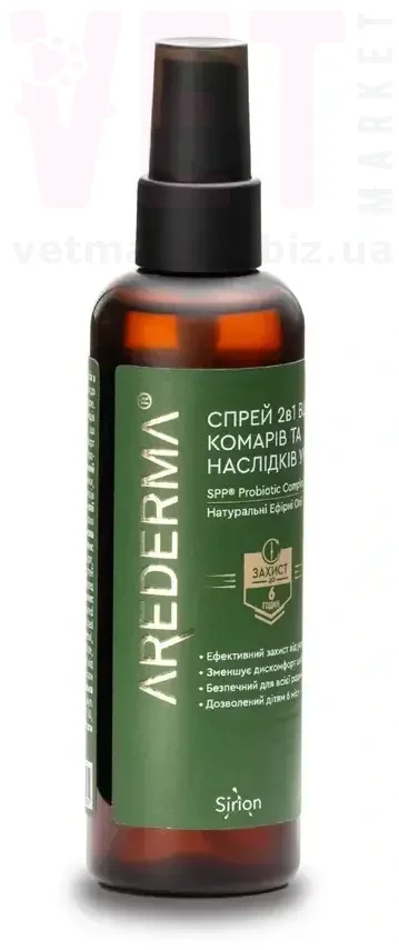 Спрей від укусів комарів 2в1 AREDERMA - це ідеальне рішення для активних людей та дітей, яким важливий натуральний захист шкіри. Легко наноситься, швидко вбирається та забезпечує тривалий захист до 6 годин від укусів. Дозволений дітим від 6 місяців.