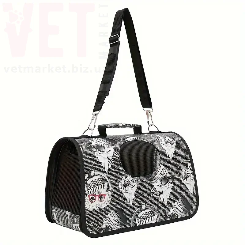 Удобная и стильная складная дорожная сумка-переноска, предназначена для переноски и транспортировки животных (кошек, собак мелких пород, домашних декоративных грызунов) весом от 3 кг до 5 кг (размер S), от 5 кг до 7 кг (размер M), от 7 до 10 кг (размер L). Сумка-переноска изготовлена из прочных и качественных материалов - нейлона, полиэстера и винила, гипоаллергенных, нетоксичных и безопасных для животных. Сумка водонепроницаема, хорошо вентеллируется благодаря широкому отверстию с прочной сеточкой вверху по средине сумки, а также застегиваемому входному отверстию с сеточкой. Оснащена удобной и крепкой ручкой. В комплект также входит ремешок для переноски на плече. В сумке питомец будет комфортно, уютно и спокойно себя чувствовать при переноске или транспортировке. Изделие легко собирается и разбирается, благодаря прочным змейкам-застежкам. Легко чистится.
