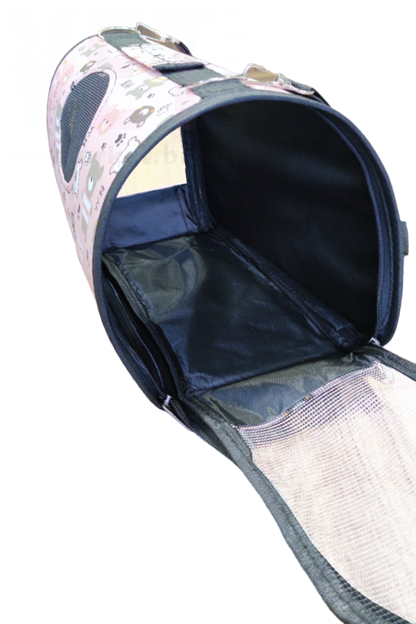 Изготовлена из прочных и качественных материалов - нейлона, полиэстера и винила, гипоаллергенных, нетоксичных и безопасных для животных. Сумка водонепроницаема, хорошо вентилируется благодаря широкому отверстию с прочной сеточкой вверху по средине сумки, а также застегиваемому входному отверстию с сеточкой.