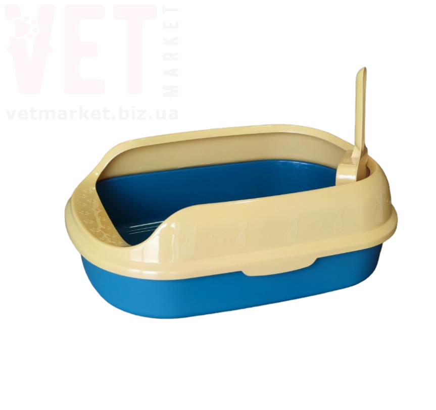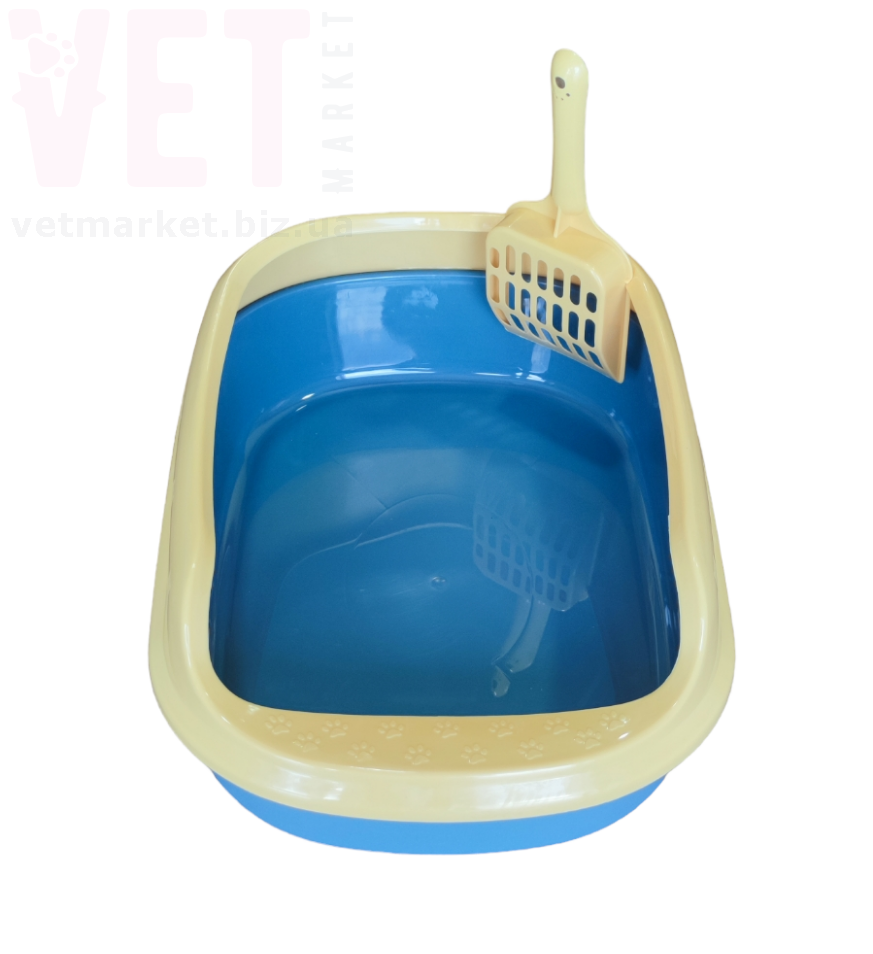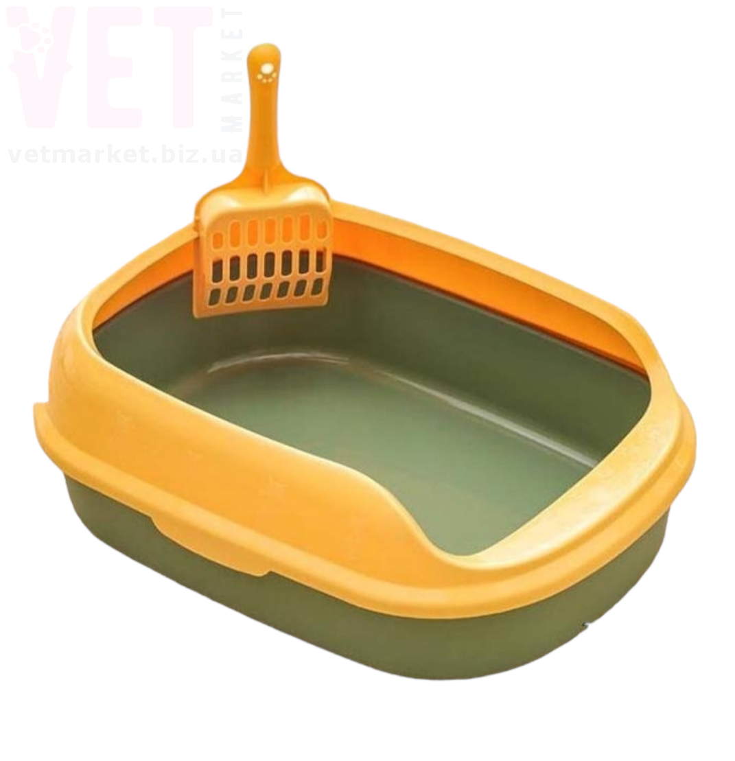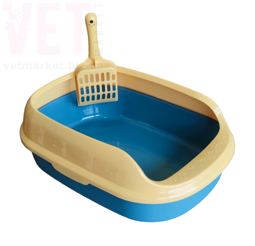 Туалет для кішок, напівзакритий, із лопаткою. З захистом від розливів.