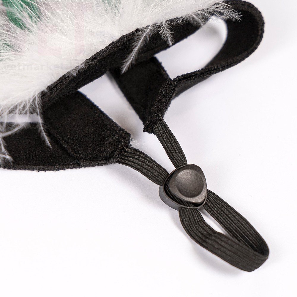 Симпатичні ріжки з повсті прикрашені натуральним пухом. Утримаються на голові улюбленця за допомогою резинки з фіксатором. Хвостику вони не заважатимуть, бо м’які, легкі і мають прорізі для вух.