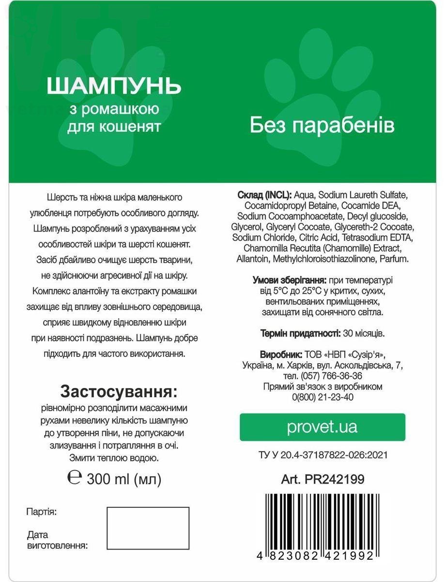 Профілайн шампунь із ромашкою для кошенят, 300 мл, ProVET