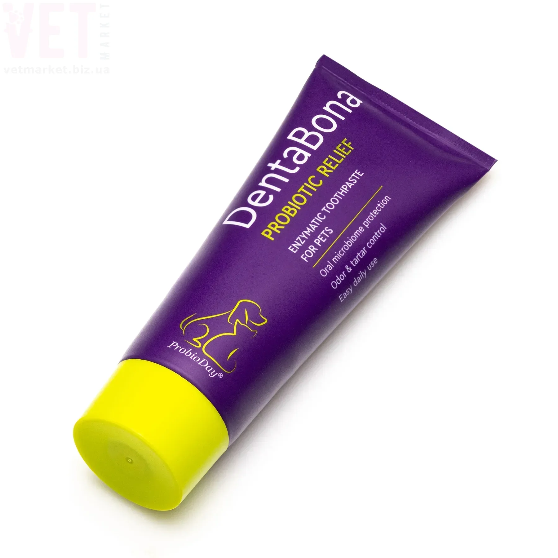 КоличествоDentaBona ProbioDay® зубна паста для собак, котів та гризунів, яка спеціально розроблена з використанням системи ензимів та пробіотичного комплексу SPP Microbiome Protection®, щоб зменшити наліт, запобігти захворюванням ясен і дискомфорту в роті, забезпечуючи свіжий подих з пащі.