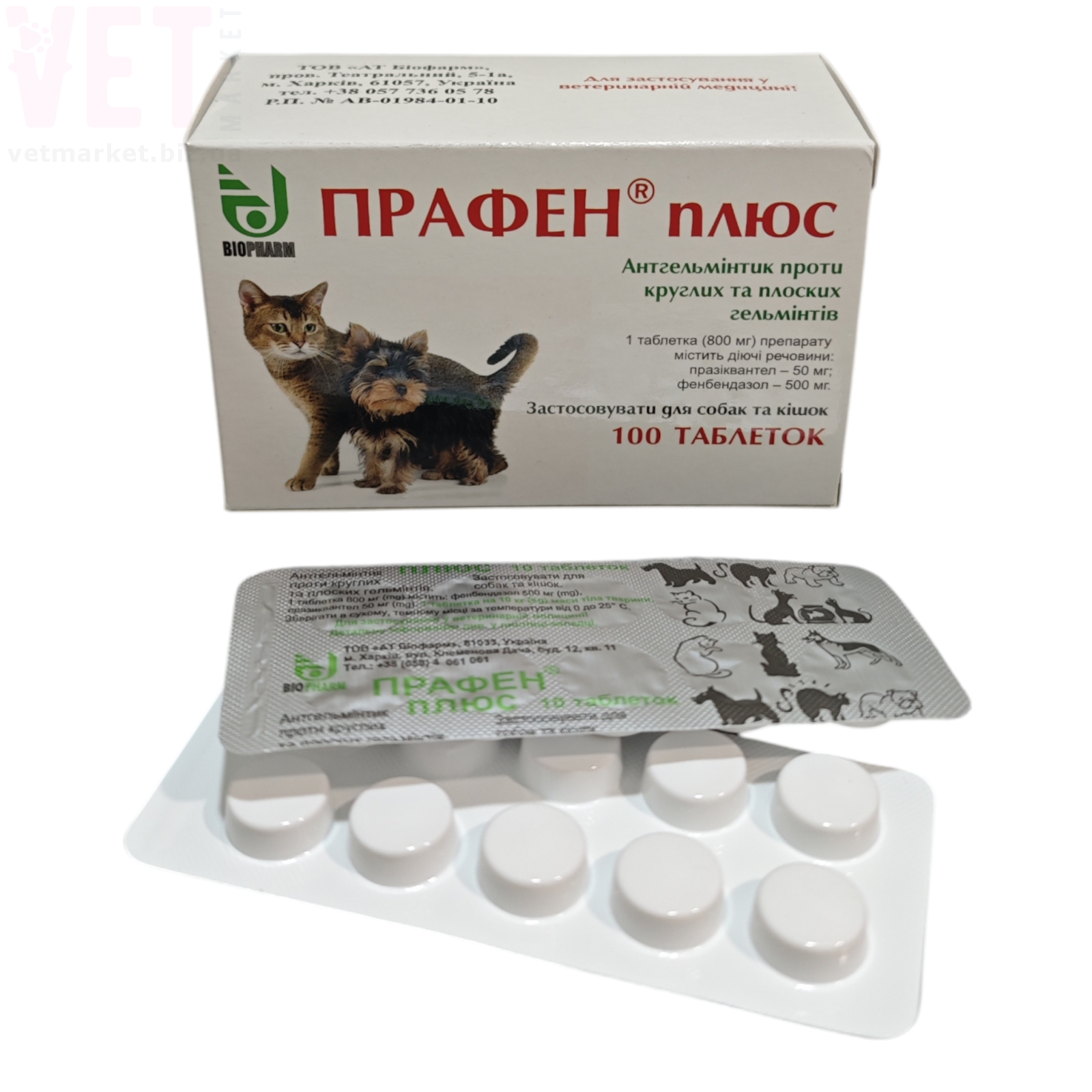 Лікувально-профілактична дегельмінтизація собак і котів при ураженні нематодами та цестодами: Toxocara canis, T. leonina, Uncinaria stenocephala, Ancylostoma caninum, Dipylidium caninum, Diphyllobothrium spp., Taenia pisiformis, T. hydatigena, Echinococcus granulosus, Alveococcus multilocularis, Multiceps multiceps, M. serialis.