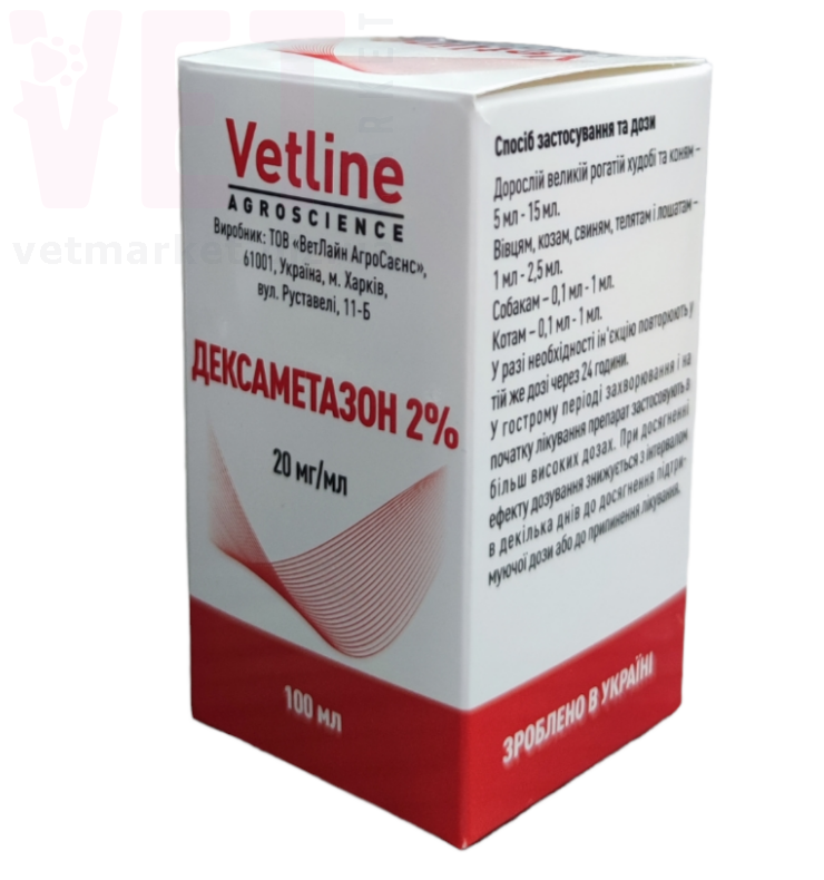 Собаки, кішки - 0,25-0,5 мл на 5 кг або 0,1-0,2 мг дексаметазону на 1 кг маси тіла. При необхідності ін'єкцію повторюють через 2 доби;