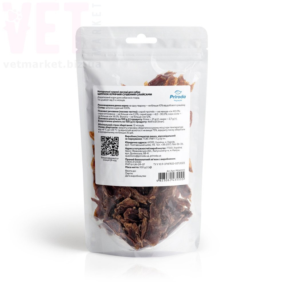 Ласощі для собак Шлунок курячий слайсами, 100 г, Priroda