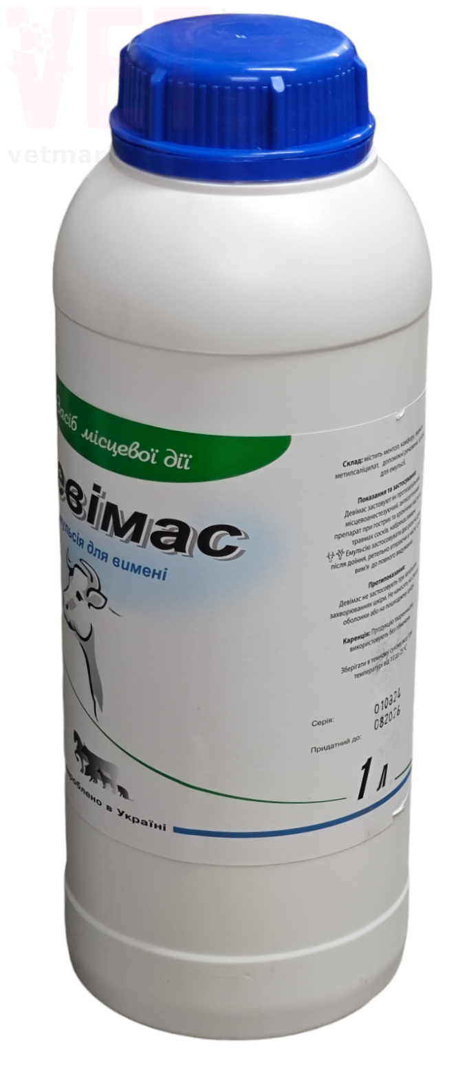 Фармакологічні властивості: “Девімас” – комбінований препарат для зовнішнього застосування, фармакологічні властивості якого зумовлені взаємним потенціюванням терапевтичних ефектів кожного з компонентів. Перший компонент емульсії, метилсаліцилат, належить до групи нестероїдних протизапальних засобів, що добре проникають через шкіру. Він чинить протизапальний та болезаспокійливий ефекти, що посилюються завдяки синергічній дії камфори, ментолу та гваяколу. Другий компонент емульсії камфорна олія при місцевому застосуванні чинить протимікробну, протизапальну, відволікаючу, знеболювальну дію та усуває свербіж шкіри. Ці властивості зумовлені наявністю у молекулі камфори функціонально активної молекули кисню, яка має високий окислювальний потенціал, порушує клітинні мембрани мікроорганізмів, руйнує багато активних сполук, що спричиняють запалення, біль і подразнення чутливих рецепторів шкіри. Ментол має протисвербіжну дію та місцевоанестезуючий ефект. При нанесенні на шкіру та слизові оболонки спричиняє подразнення нервових закінчень, що супроводжується відчуттям холоду, легкого печіння та поколювання. Гваякол, як органічна речовина має дезінфікуючу і пом'якшувальну дію. Сукупні складові препарату у мазевій основі зумовлюють виражену антисептичну, протизапальну, бактеріостатичну, тонізуючу, пом’якшувальну, місцево-знеболюючу, регенеруючу дії, що сприяє швидкому загоюванню ран.