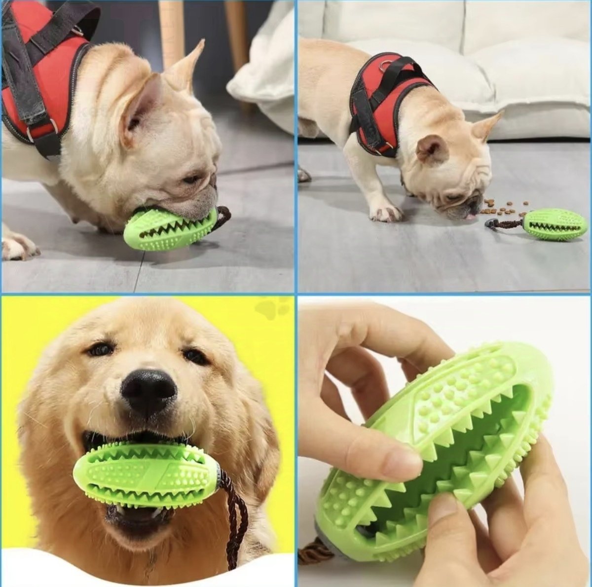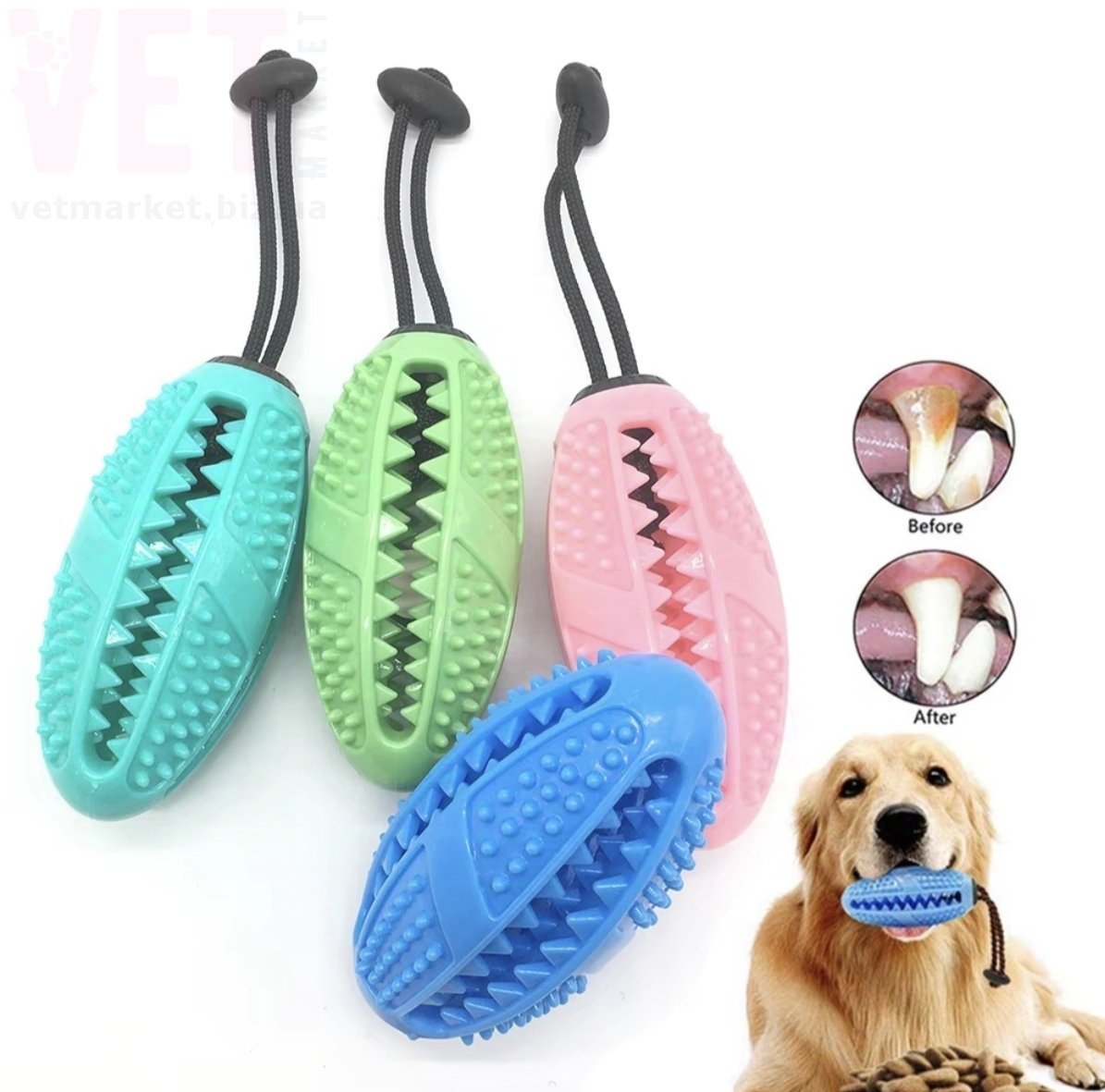 Игрушка играет роль зубной щетки, во время игры у собаки очищаются и укрепляются зубы, прекращается зуд. Игрушка позволит избежать разрушения различной домашней мебели и оборудования.