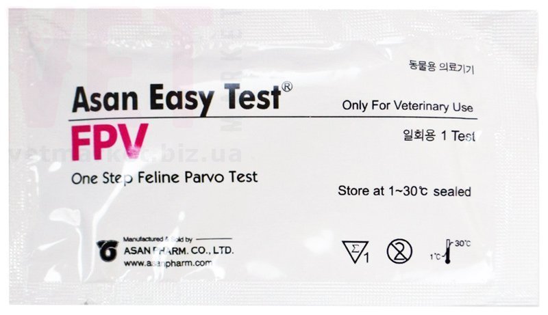 1. Отрицательный результат Наличие одной окрашенной полоски возле контрольной линии (С). 2. Положительный результат Наличие двух окрашенных линий в тестовой и контрольной зонах. Внимание !! Результаты теста считаются действительными вне зависимости от интенсивности окрашивания полосы (1) в окне результатов! Интенсивность окрашивания непосредственно зависит от количества вируса ил антител, циркулирующих в крови животного. 3. Результат не действителен Отсутствие окрашенной линии в контрольной зоне (С). Даже если наблюдается наличие окрашенной линии в тестовой зоне (Т). ПРИМЕЧАНИЕ Asan Easy Test® FPV Ag предназначен для первичной скрининговой диагностики антигенов панлейкопении (парвовирус) котов. Этот комплект может обеспечить быстрый и простой способ получить подтверждение диагноза, но также не следует исключать возможности получения ложноположительного или ложноотрицательного результатов, вызванных различными факторами. Врач ставит диагноз после рассмотрения всех клинических симптомов. Точный клинический диагноз не должен основываться на одном результате теста. СПЕЦИФИКАЦИЯ ТЕСТА Чувствительность: FPV Ag - 98.1% в сравнении с РCR Специфичность: FPV Ag - 98.4% в сравнении с РCR Предел обнаружения: FPV Ag - 10HAU / ml Ф