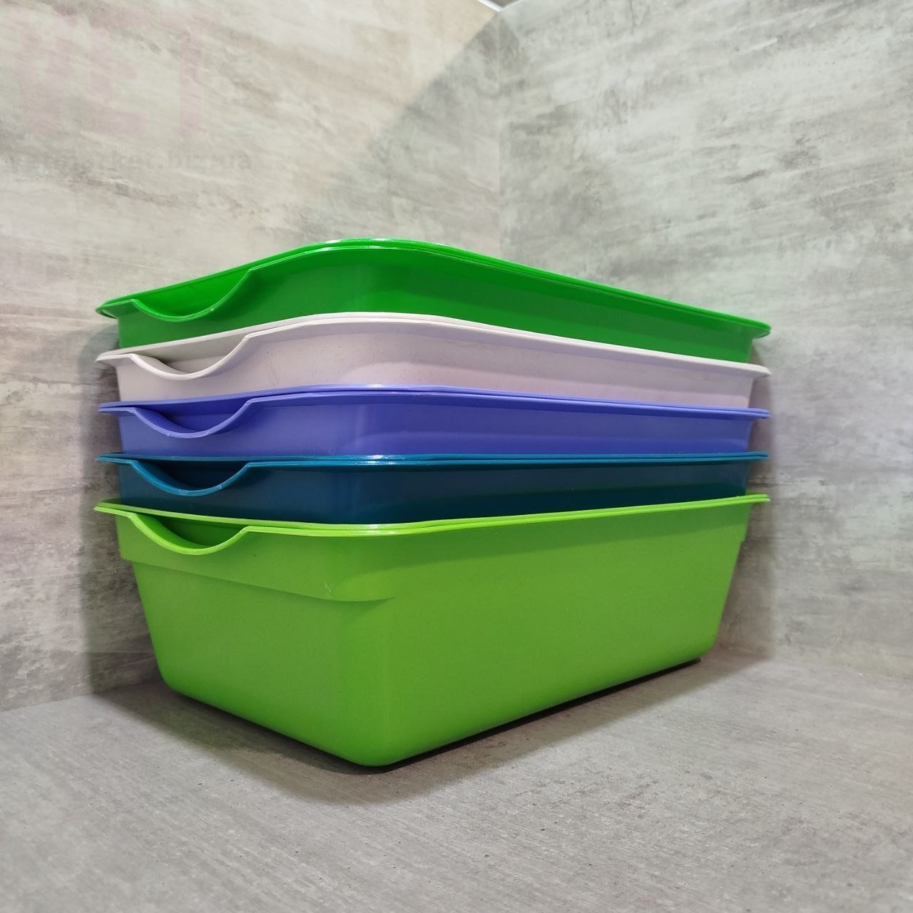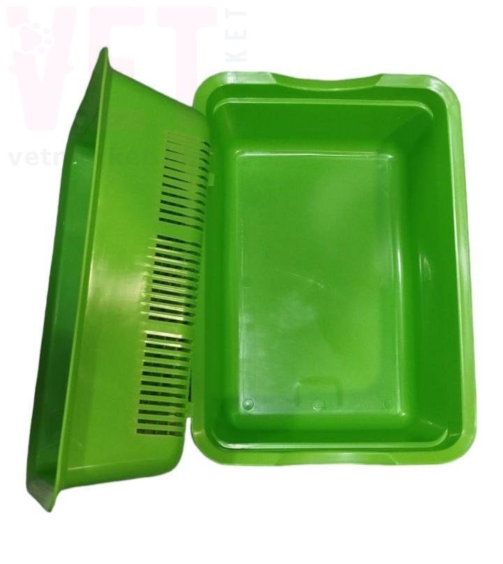 Пластиковый туалет глубокий с сеткой. Подходит для гигиены котов и кошек. Относится к туалетам типа сухие лапки за счет съемной сетки.
