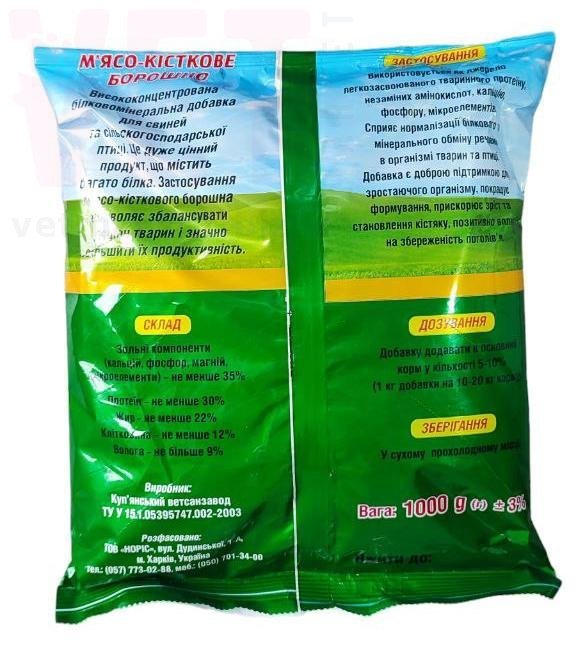Используется как источник животного протеина, незаменимых аминокислот, кальция, фосфора, микроэлементов. Содействует нормализации белкового и минерального обмена веществ в организме животных и птиц. Добавка является хорошим подкормом для растущего организма, улучшает формирования, ускоряет рост, становление скелета, позитивно влияет на сохранение поголовья.