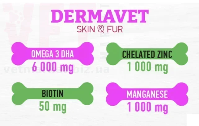 КоличествоДоктор Вет Дермавет (Dr.Vet Dermavet) - витамины, микроэлементы и омега-3 жирные кислоты для блестящей шерсти и здоровой кожи