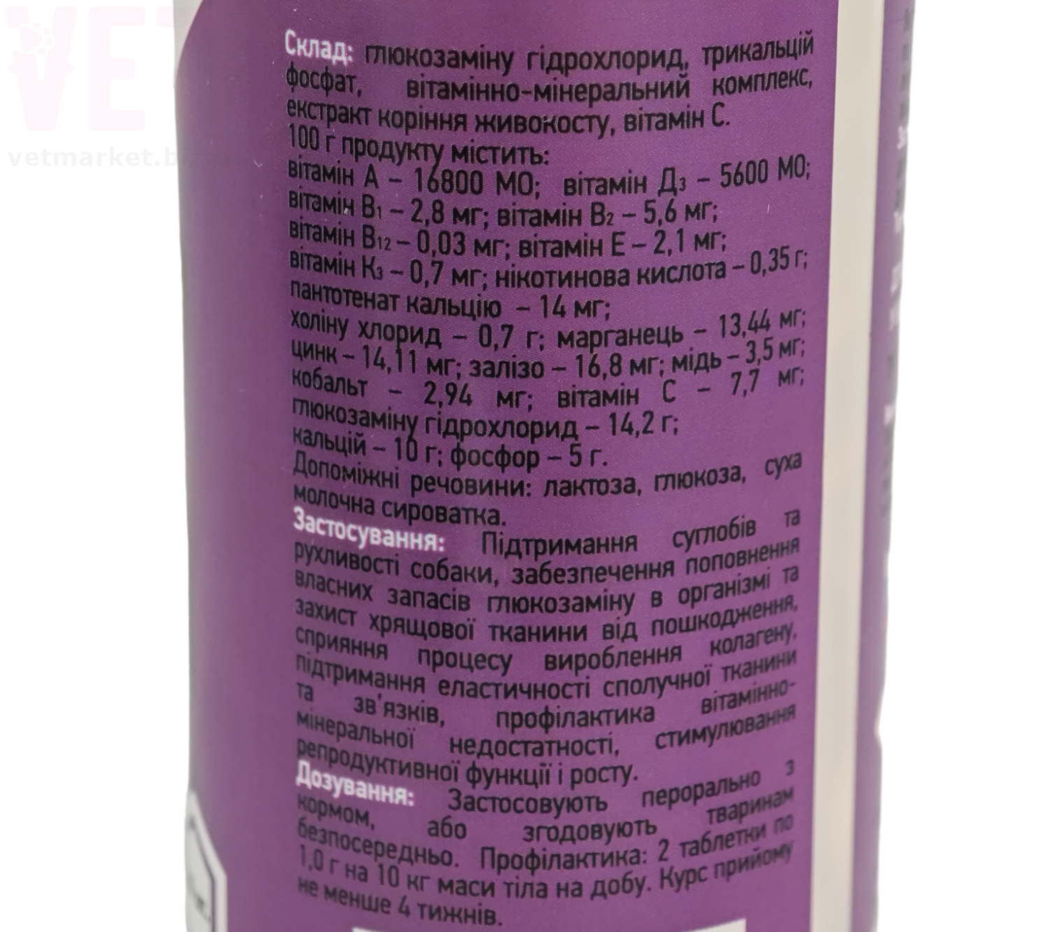 Як допоміжний засіб при лікуванні: 2 пігулки по 1,0 г на 5 кг маси тіла на добу. Курс лікування 4-6 місяців (за рекомендацією лікаря ветеринарної медицини).