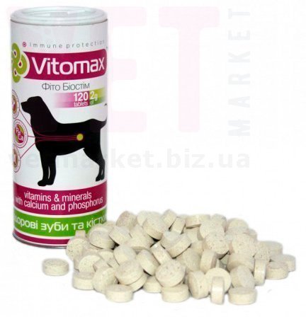 Здоровые зубы и кости важны не только для активных собак. При недостатке кальция или фосфора в организме питомца происходят различные нарушения, сопровождающиеся дискомфортом, заболеваниями и травмами. К сожалению, в повседневной пище собаки редко получают данные минералы в достаточном количестве, что обуславливает необходимость внедрения специальных пищевых добавок. Витаминно-минеральный комплекс ТМ Vitomax "Для зубов и костей собак с кальцием и фосфором" позволяет предоставить собаке все необходимые вещества для правильной работы зубов и костей. Данный препарат может применяться и как профилактическое, и как лечебное средство.