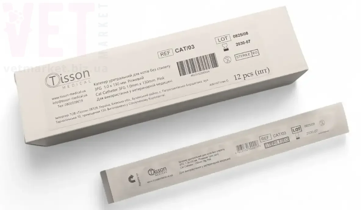 Катетер уретральный Tisson Medical 3FG (1,0 мм * 130 мм) розовый для котов без стилета — это специальное ветеринарное изделие для катетеризации мочевого пузыря у кошек, часто используется при урологических проблемах (например, закупорка) для дренажа или введения лекарств, имеет размер 3 Fr (френча) и длину 130 мм, предназначен для облегчения отхождения мочи или промывания, при этом отсутствие стилета делает его более гибким и удобным для некоторых процедур, но требует аккуратности при введении.