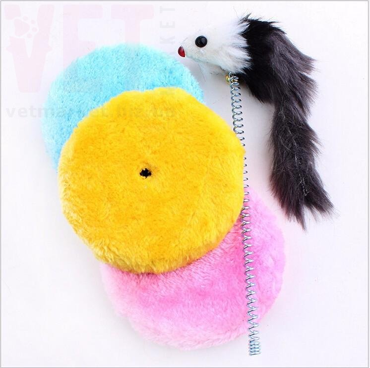 Мышка-дразнилка, игрушка для кошек. Изготовлена из деревянной фланелевой подставки разных цветов, обтянутая мягким меховым материалом, в центре упругая пружина с симпатичной пушистой мягкой мышкой.