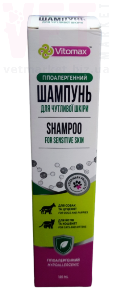 Шампунь гипоаллергенный для чувствительной кожи предназначен для ухода за животными с чувствительной кожей. Способствует повышению эластичности кожи, предотвращает ее пересыхание, оказывает увлажняющий и успокаивающий эффект. Включает аллантоин, который оказывает кератолитическое действие, запуская процесс самоочищения кожи путем стимуляции отслоенного эпидермиса.