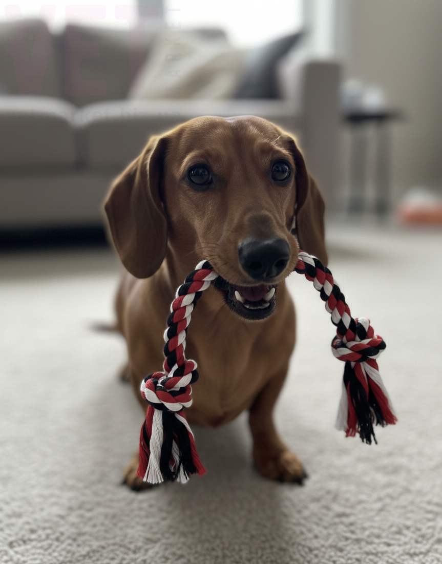 - Изготовлен из натурального волокна не токсичного для кусания и жевания собакой.