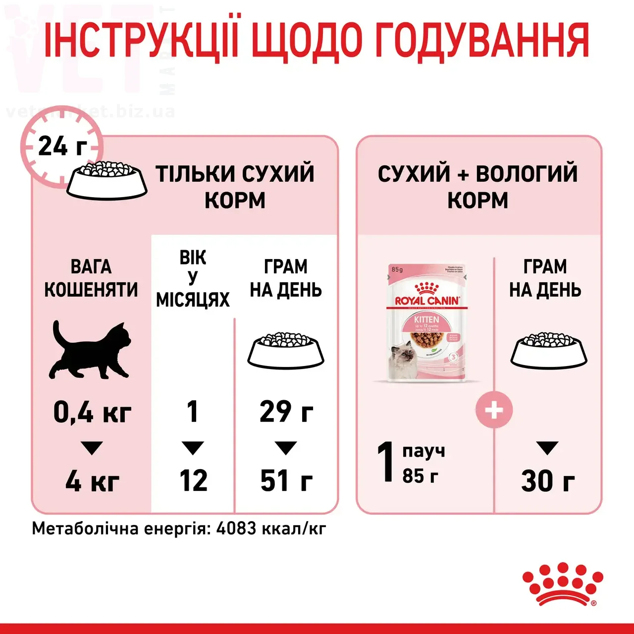 КоличествоПовнораціонний сухий корм для кошенят віком до 12 місяців