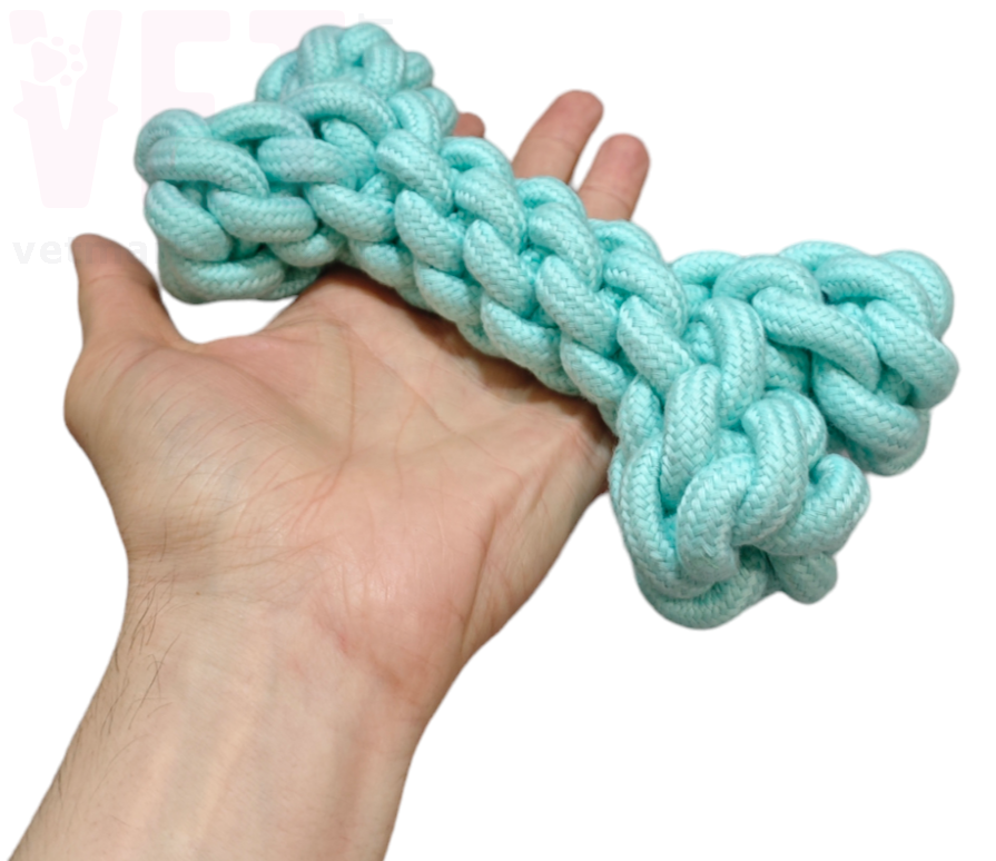 Игрушка грейфер для собак плетеная, в форме кости из 100% натурального хлопка. Отличается долговечностью и очень высокой прочностью в играх собакой, игрушка долго сохраняет свою форму. Материал подобен жевательной резинке для собаки, во время игры с этой игрушкой она избавляет зубы и десна собаки от зуда (особенно у щенков), очищает и удаляет зубной камень, обеспечивает рост и укрепление зубов, укрепляет мышцы челюсти. Игрушка позволит избежать разрушений и разгрызания питомцем различной домашней мебели и оборудования. Подходит для собак малых, средних и больших пород.
