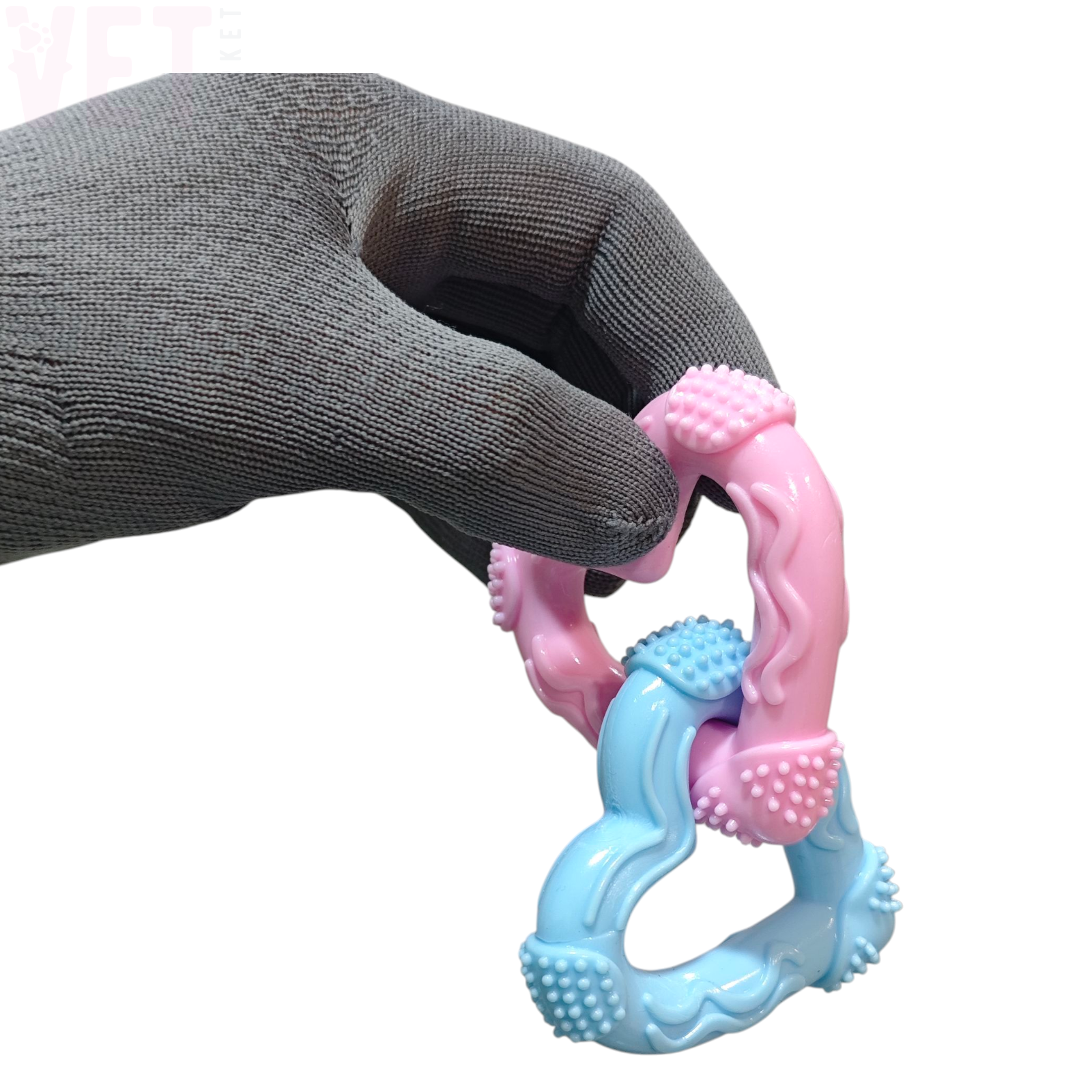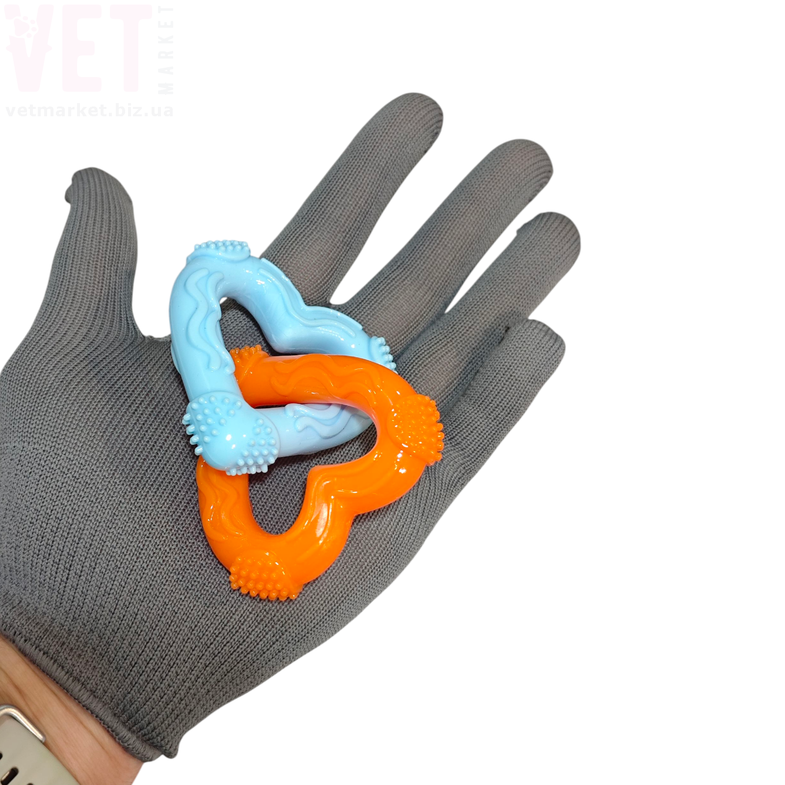 Жувальна іграшка для собак у формі переплетених сердець — ідеальний варіант для активних і грайливих улюбленців. Завдяки унікальній формі іграшка легко захоплюється зубами, підходить для самостійних ігор та взаємодії з господарем.