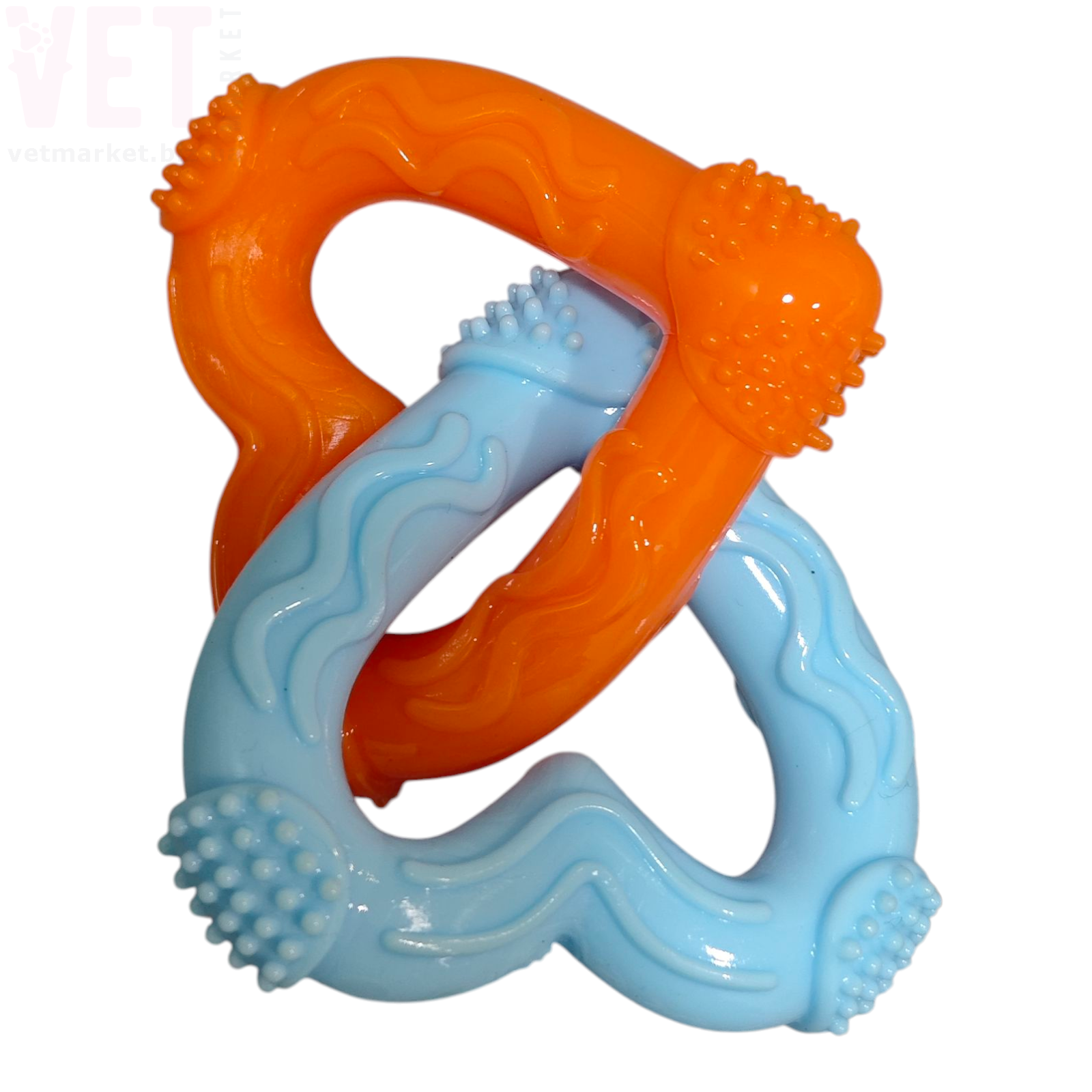 Рельєфна поверхня сприяє очищенню зубів від нальоту, масажує ясна та допомагає підтримувати гігієну ротової порожнини. Виготовлена з міцної та безпечної гуми, стійкої до укусів.