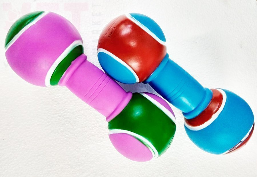Жевательная игрушка для собак и щенков. Резиновая гантель-мяч предназначена для игр и обучения животного, принесет огромное удовольствие и развлечет домашнего питомца.