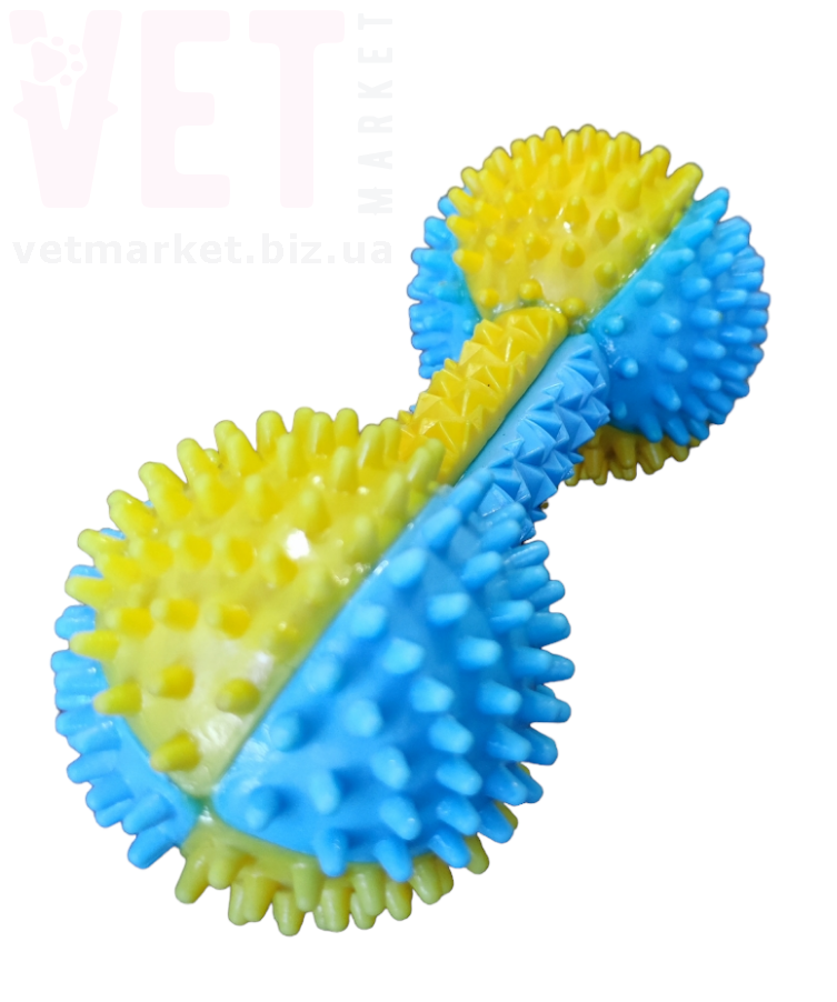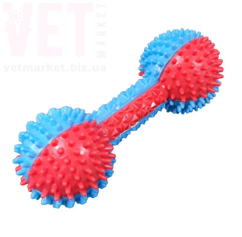 Гантель з шипами для собак та цуценят. Призначена для ігор, навчання, розвитку, а також для розваги домашнього вихованця. Дозволить уникнути псування вихованцем домашніх меблів, задовольняючи потребу щось кусати та жувати. Характеристики: