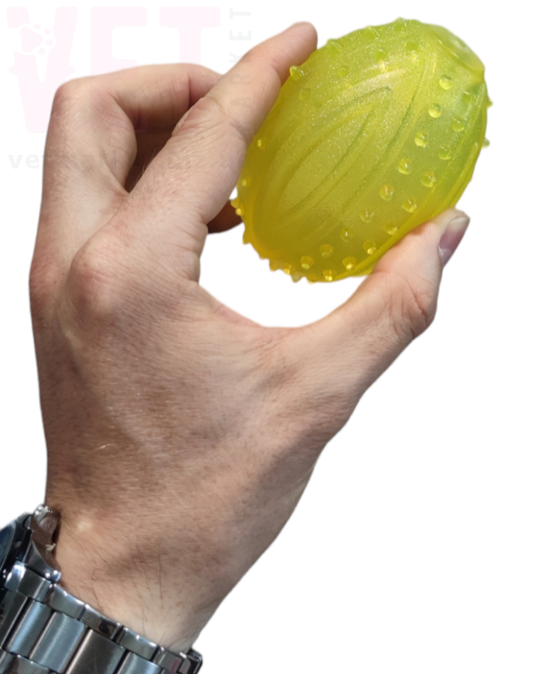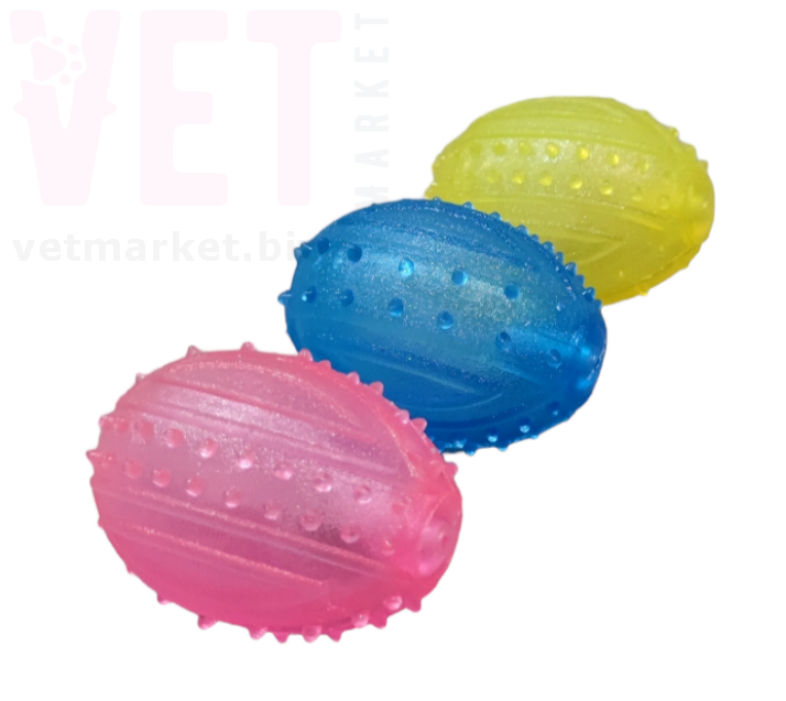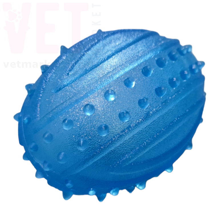 Игрушка мяч-регби резиновый с шипами. Диаметр 10,5 х 6,5 см. Игрушка прочная на укус, предназначена для игр, поощрений, обучения, дрессировки собак. В процессе игры очищает зубы от налета и массажирует десна. Использование такой игрушки позитивно отразиться на здоровье домашнего питомца.