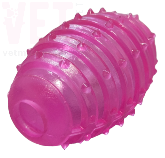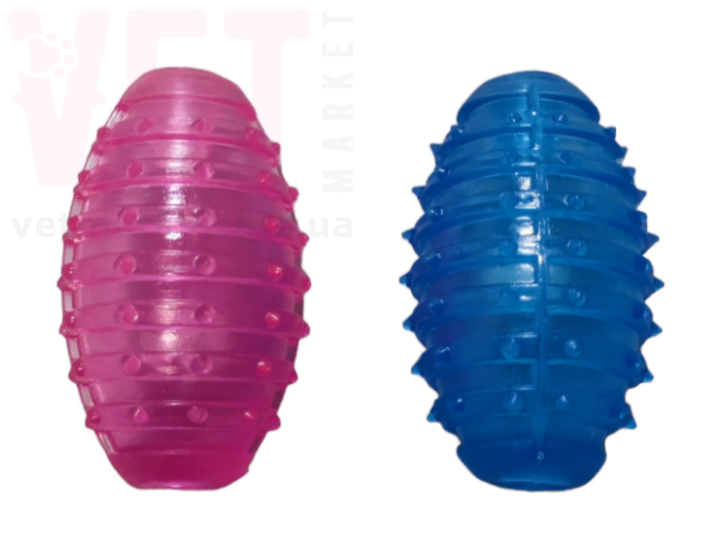 Игрушка мяч для регби с шипами резиновый полупрозрачный. Игрушка святится разными цветами внутри. Диаметр 9,5 см. Разные цвета в ассортименте.