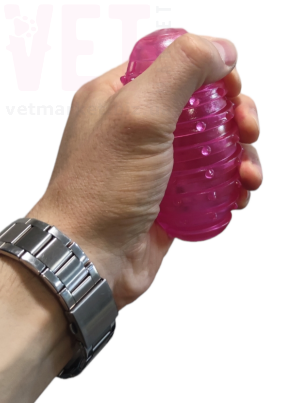 Игрушка прочная на укус животным, предназначена для игр, поощрений, обучения, дрессировки собак. В процессе игры мячик очищает зубы от налета и массажирует десна. Применение игрушки позитивно отразиться на здоровье домашнего питомца. Издает звук при движении, привлекая внимание животного и располагает домашнего питомца к игре.