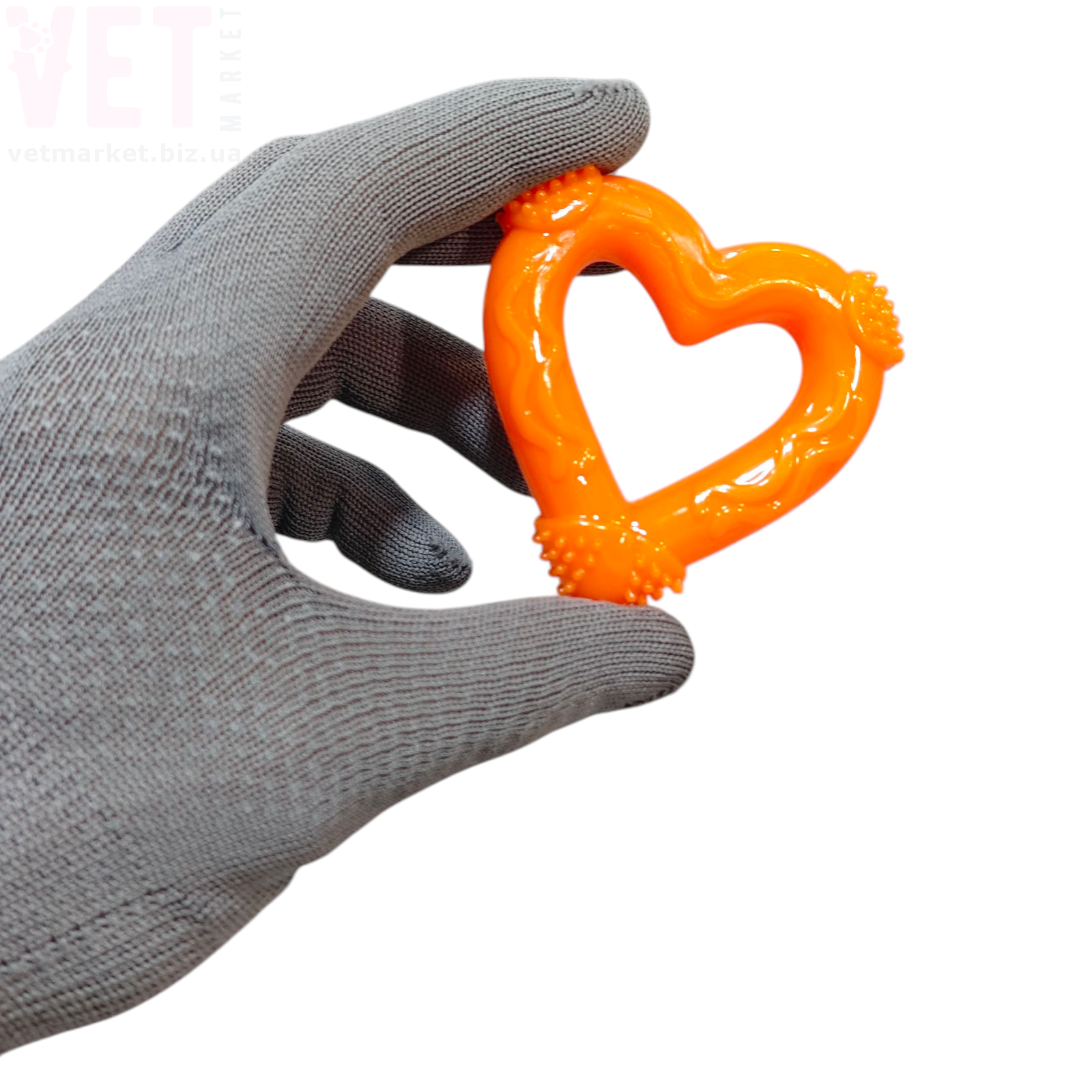 Мила іграшка у формі сердечка стане улюбленою забавою вашого хвостика! Виготовлена з безпечної еластичної гуми, вона підходить для жування, масажує ясна й допомагає підтримувати здоров’я зубів.