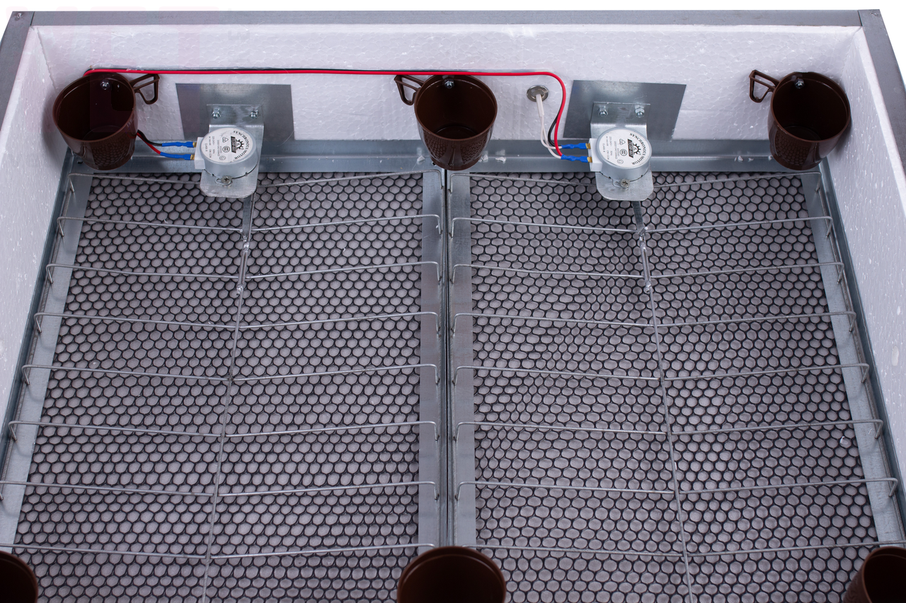 Автоматический переворот состоит из влагозащищенного редукторного двигателя, рамки и сетки для яиц.Также в комплекте с инкубатором вы найдете таймер и подробную инструкцию по эксплуатации.