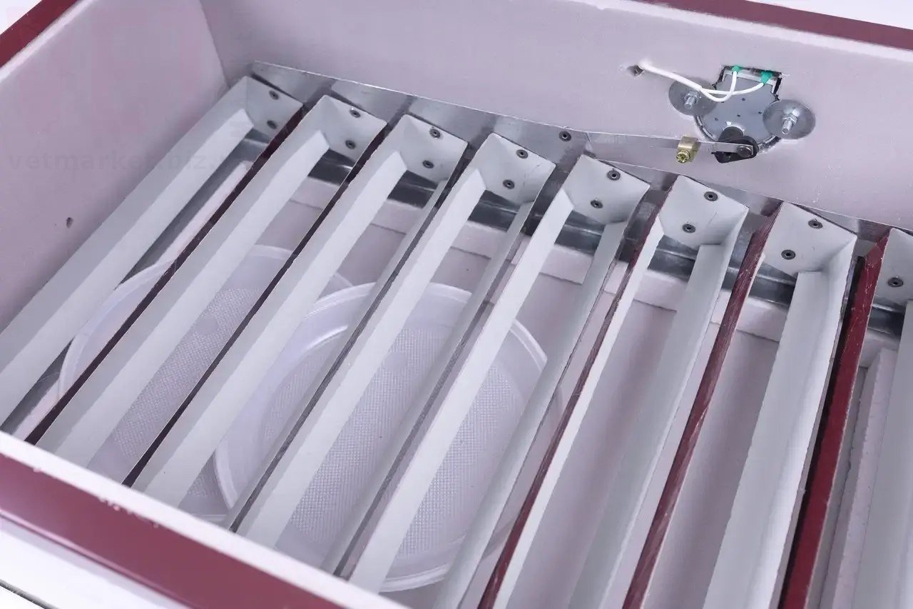 Автоматический переворот состоит из влагозащищенного редукторного двигателя, рамки и сетки для яиц