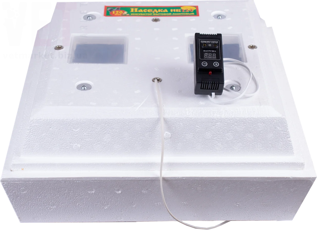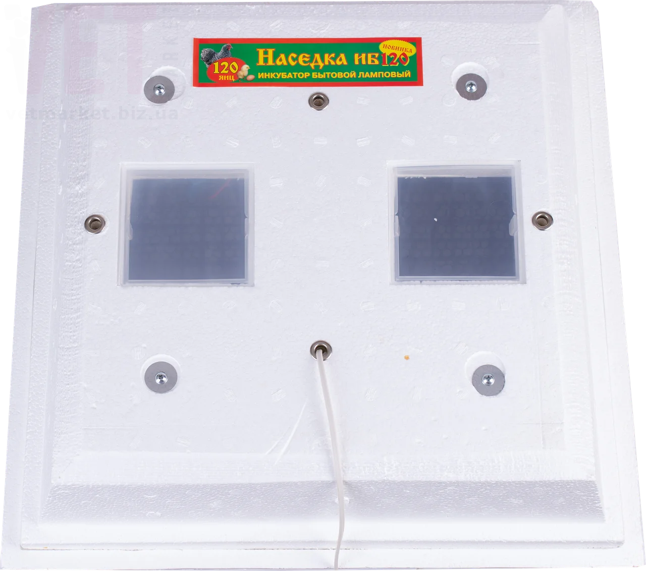 Корпус инкубатора литой, сделан из плотного пенопласта. В крышке находятся два смотровых окна.