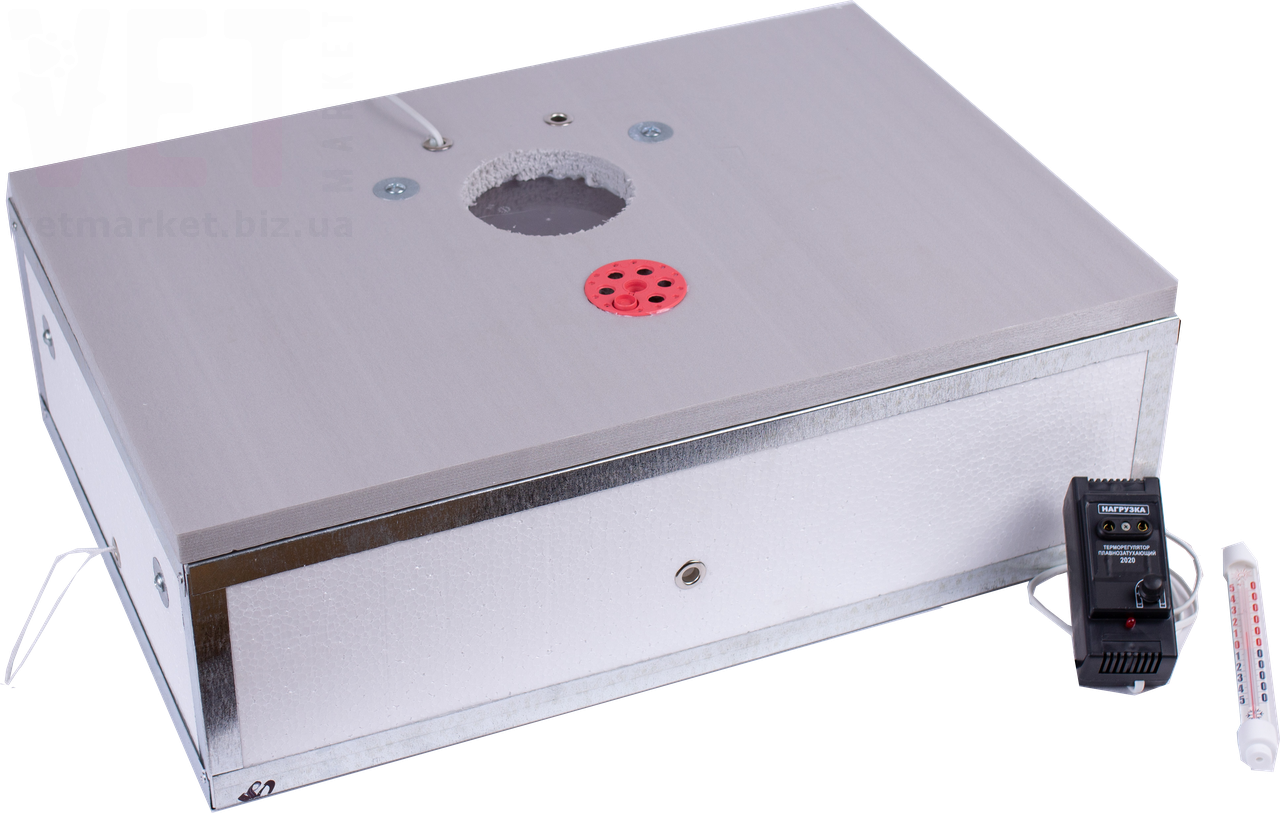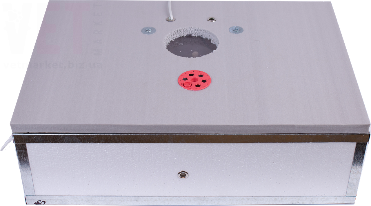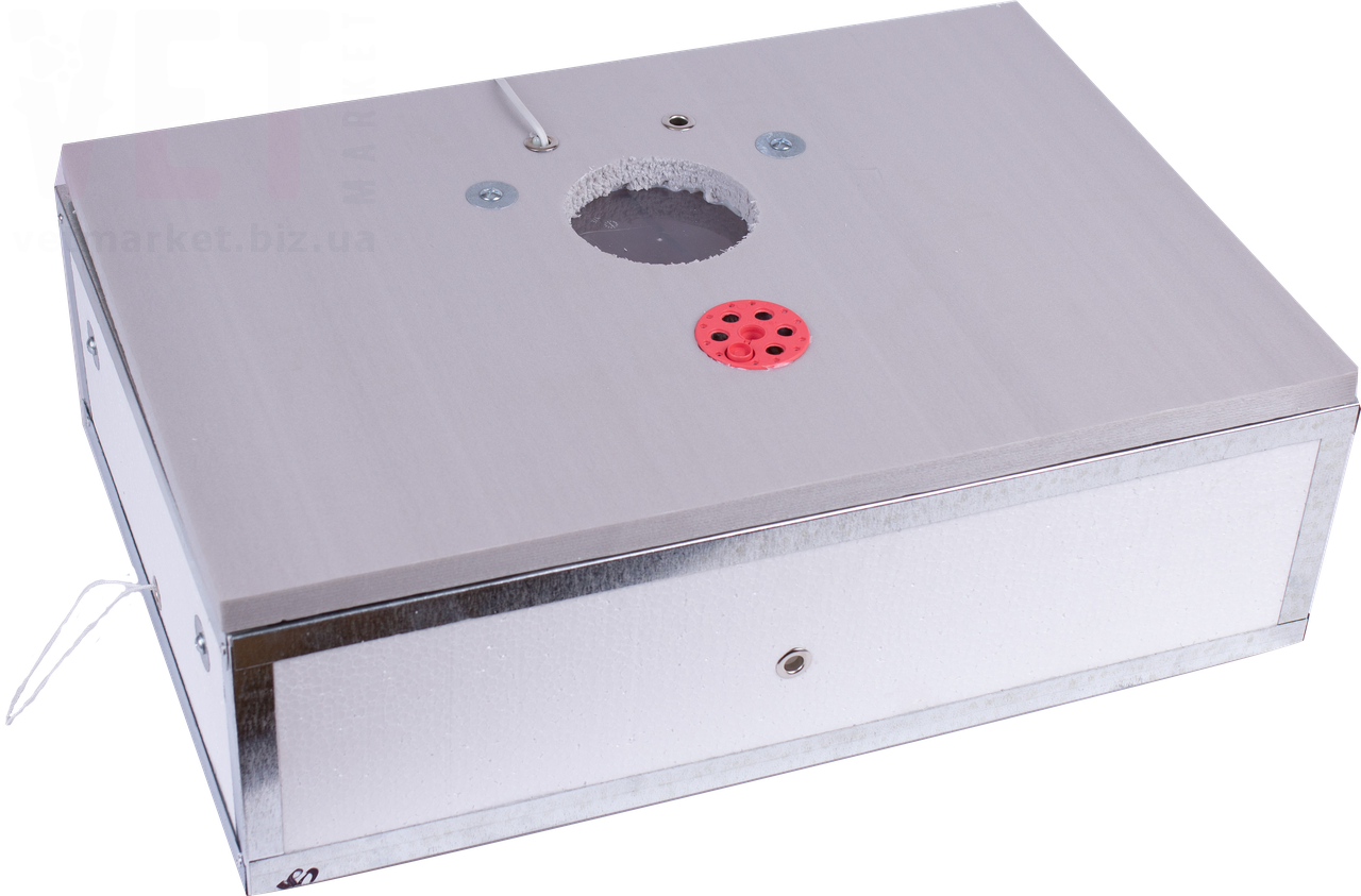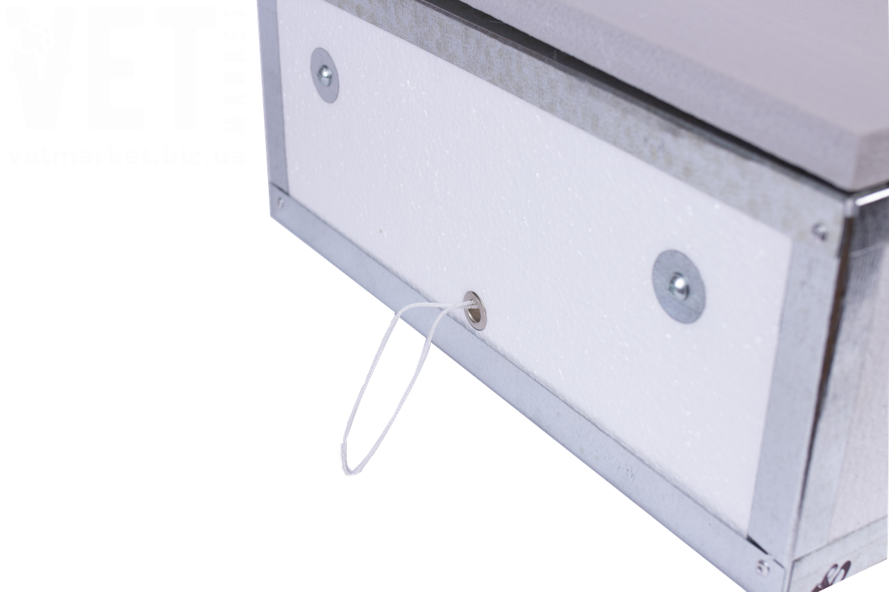 Боковые стороны инкубатора состоят из пенопластового корпуса, оббитого металлическим уголком. Низ у инкубатора пенопластовый, крышка – полистирол. В крышке находится смотровое окно.