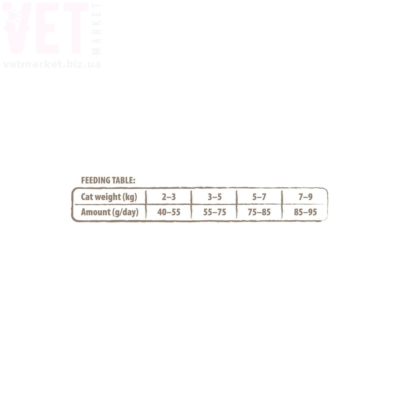 | Вага кота (кг) | 2-3 | 3-5 | 5-7 | 7-9 |