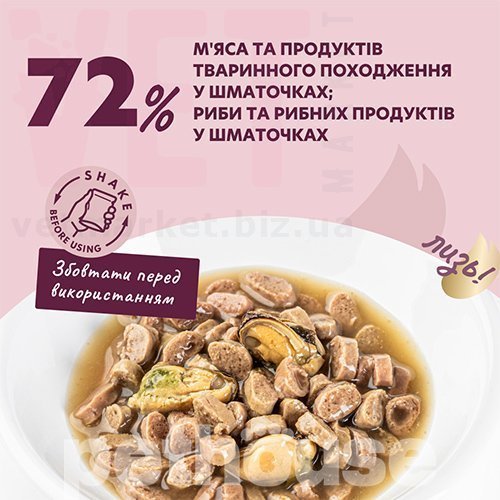 Сочетание лосося и цельных мидий придают корму изысканный вкус, который понравится даже самым требовательным гурманам