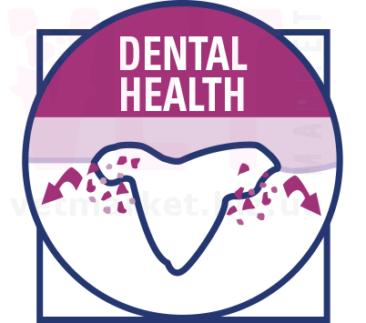 Собаки маленьких размеров имеют повышенный риск стоматологических заболевания в зрелом возрасте. Специальный компонент трифосфат пентанатрия, входящих в состав корма, уменьшает образование зубного налета, а также размер и тектсура крокет способствуют поддержанию здоровья полости рта