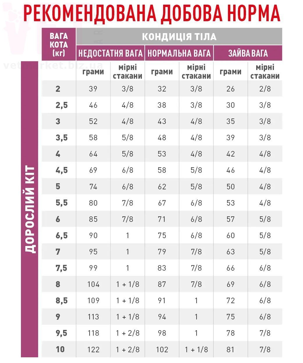 Адаптированное содержание энергии для уменьшения порции корма и компенсации снижения аппетита.
